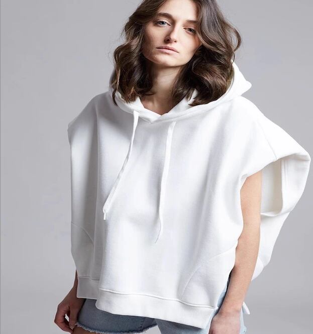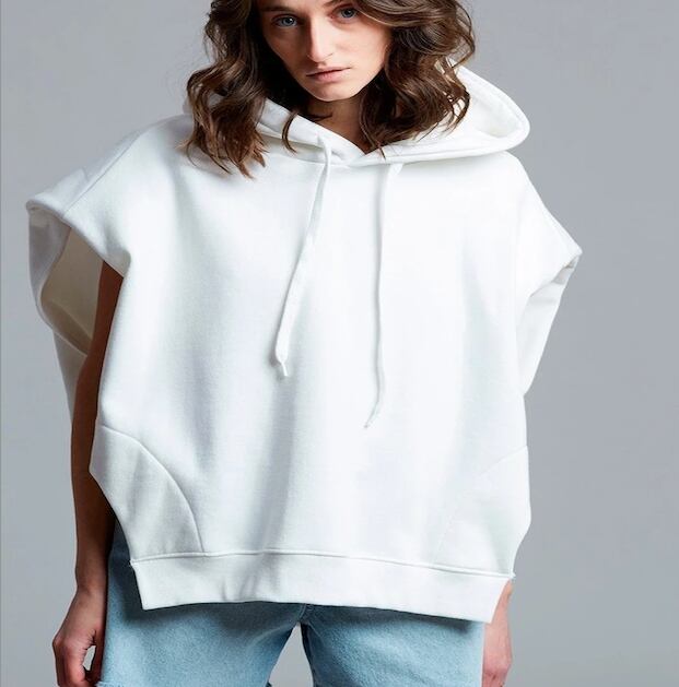 フレンチスリーブで抜け感を演出する、ゆるっとラフに着こなせるノースリーブパーカー。