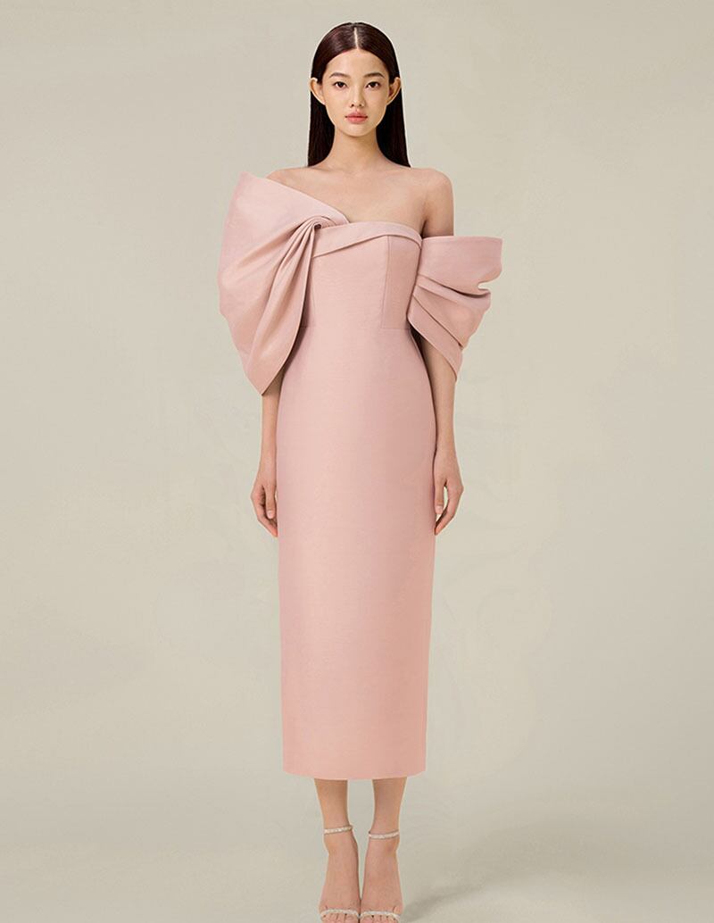 レディース ドレス パーティー 演奏会 舞台 謝恩会 ミモレ ロング オフショル スレンダー スリム アシンメトリー ストレート 細身 Iライン イブニング シースライン バックリボン ハイウエスト ドレープ 可愛い きれいめ シンプル 大人可愛い 上品 キュート ガーリー エレガント モダン フォーマル 清楚 セクシー シック 華やか センシュアル ロマンティック イベント ホテル 二の腕カバー 高見え 格上げ スタイルアップ 春 夏 S M L XL イエロー ピンク ブラック アプリコット レッド