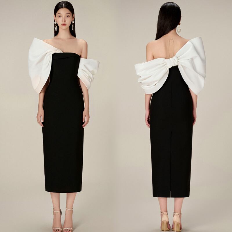 華やかな夜に映えるロマンティックドレス。アシンメトリーなデザインとシースラインが魅せる、春夏にぴったりな華やかスタイルです。スリムフィットでスタイルアップを叶え、大きなバックリボンが印象的なエレガントガーリーを演出。上品で清楚、それでいてセンシュアルな魅力も忘れない…大人可愛いあなたに贈る一枚です。