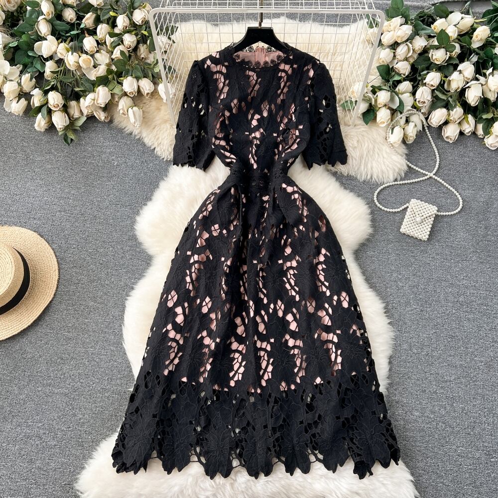レディース ワンピース ミモレ ミディ 半袖 ラウンドネック フレア Aライン フェミニン ハイウエスト 透け感 総レース かわいい 大人可愛い きれいめ 上品 ガーリー エレガント 抜け感 ラブリー キュート クラシカル カントリー ロマンティック シック 爽やか 華やか ドーリー ドレッシー 花柄 フラワー 春 夏 デート お出かけ リゾート 旅行 休日 ガーデン ショッピング 体型カバー 普段使い モテ 清楚 スタイルアップ 涼しい 通気性 S M L XL 2XL ブラック ブルー アプリコット