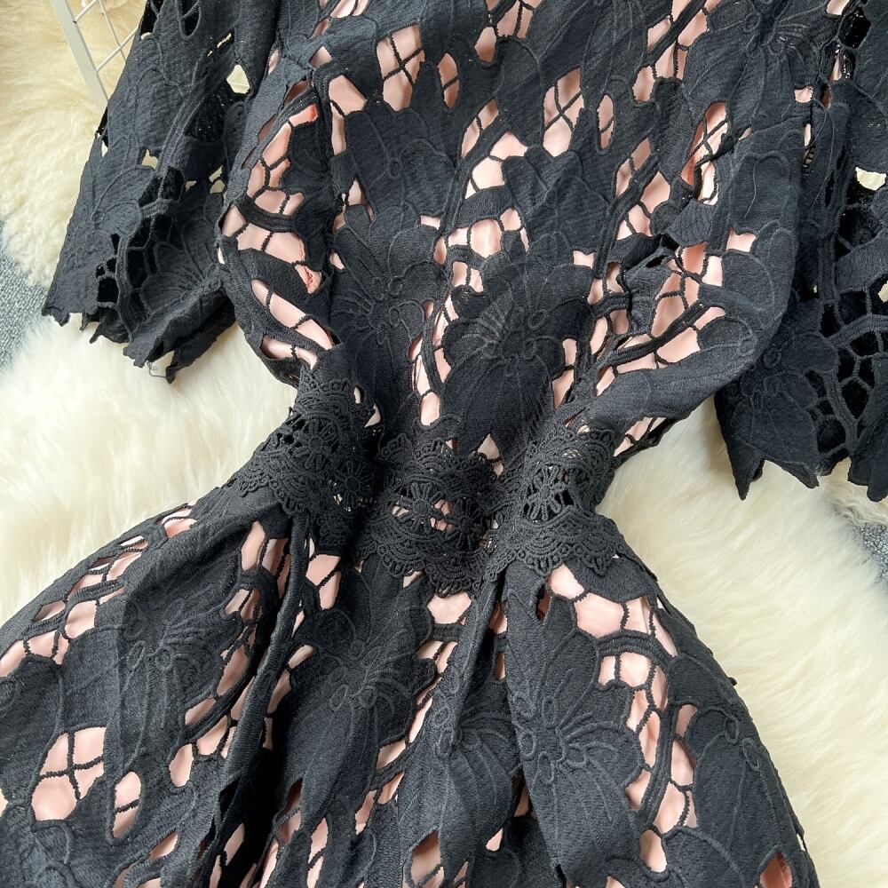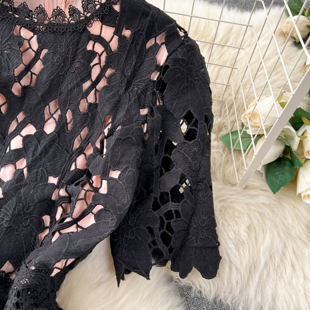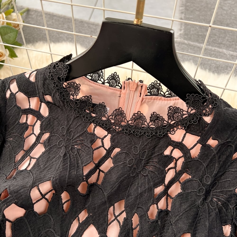 ロマンティックで清楚な大人フェミニンスタイル。総レースが華やかに舞うミモレ丈ワンピースです。ハイウエストとフレアなAラインで、体型カバーも叶うスタイルアップ設計。クラシカルな抜け感が春夏のお出かけやデートにぴったり。清楚でありながらキュートな印象に仕上がるブルー、ブラック、アプリコットの3色展開で、あなたの魅力を引き出します。
