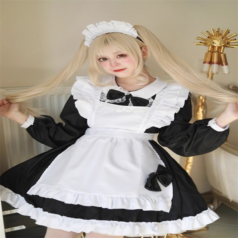 メイド服 レディース ワンピース ショート 膝上 長袖 襟付き 丸襟 Aライン フリル リボン 主役級 かわいい おしゃれ こなれ感 ガーリー 個性的 クール ラブリー キュート ゴシック ロリータ セクシー 可愛い 無地 春 夏 秋 冬 オールシーズン ロングシーズン シーズンレス 祭り 文化祭 学園祭 イベント コスプレ コーデ 美脚 脚長 モテ インスタ映え スタイルアップ コスチューム 衣装 仮装 S M L XL 2XL 3XL 4XL 5XL 小さいサイズ 大きいサイズ プラスサイズ パステル