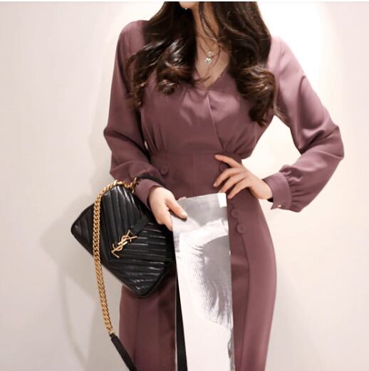 パープルレッドの深みある色合いが、存在感とラグジュアリーさを引き立て、ホテルディナーやレストランでのお出かけはもちろん、春秋のお呼ばれやオフィスシーンにも活躍。
