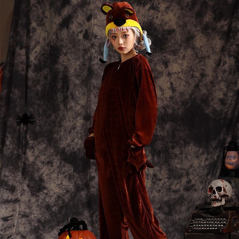 ハロウィン衣装 イベント衣装 着ぐるみ つなぎ 長袖 ファスナー かわいい カジュアル おしゃれ かっこいい レトロ こなれ感 ラフ 個性的 クール 主役級 存在感 抜け感 ラブリー キュート ベーシック アメリカン カントリー アクティブ ワイルド ファンタジー 可愛い 無地 秋 冬 ハロウィン 祭り 文化祭 学園祭 パーティー イベント 発表会 コスプレ 演劇 舞台 ステージ コーデ 防寒 体型カバー モテ インスタ映え コスチューム 衣装 仮装 あったか M L ゆったり ゆる 茶色 ブラウン