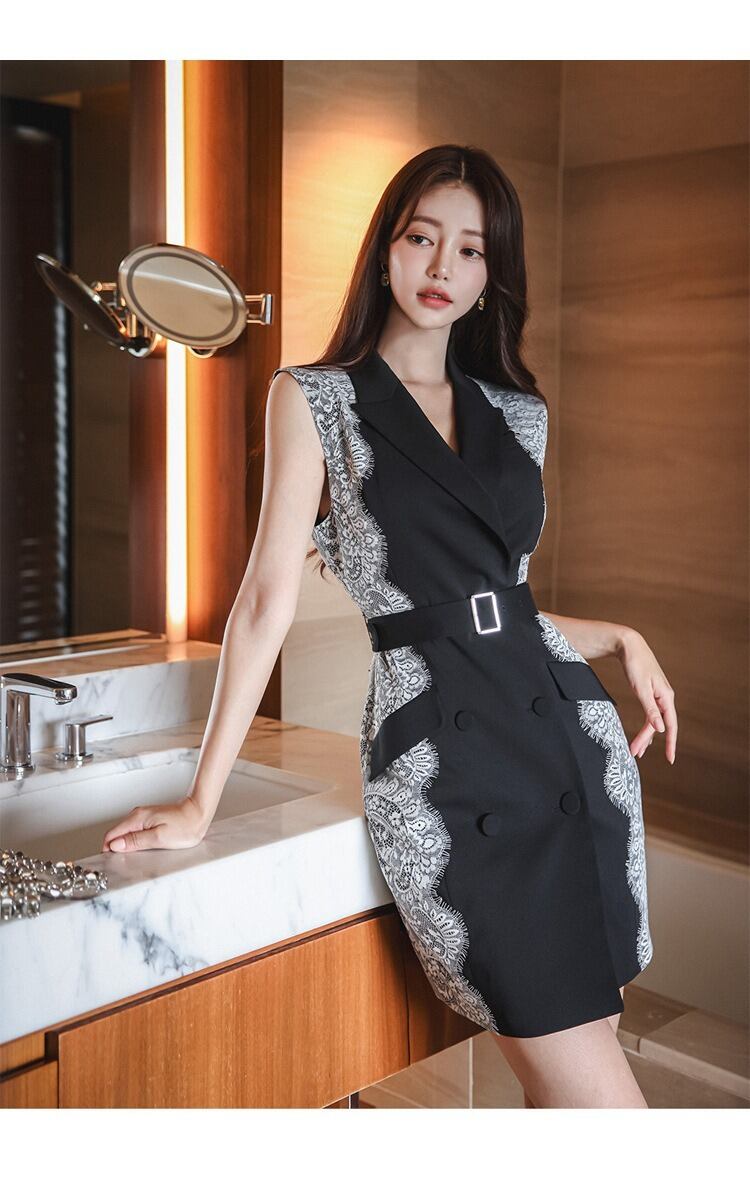 レディース ワンピース スーツ ショート 膝上 ノースリーブ 角襟 タイト スリム 細身 レース ベルト ウエストマーク ハイウエスト ボタン 大人可愛い きれいめ シンプル カジュアル 上品 おしゃれ かっこいい こなれ感 個性的 クール モード系 エレガント モダン 主役級 存在感 かっちり ナチュラル セクシー 色気 華やか 可愛い 清潔感 無地 夏 ビジネス デート パーティー イベント レストラン 発表会 コンサート コーデ 楽ちん 美脚 脚長 高見え S M L XL 黒 ブラック 大人カラー