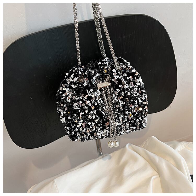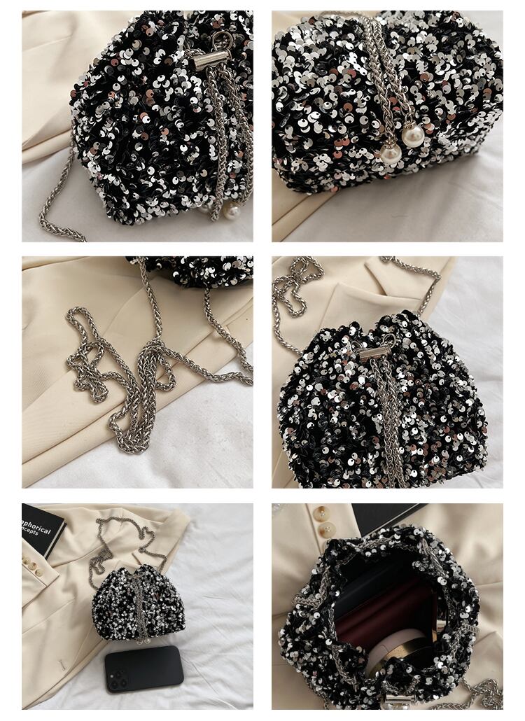 レディース バッグ カバン ショルダー 斜めがけ 肩がけ ポシェット 巾着 ミニバッグ イブニングバッグ チェーン スパンコール かわいい 大人可愛い きれいめ 上品 お洒落 かっこいい こなれ感 キュート クール セクシー エレガント モダン 主役級 存在感 抜け感 華やか 個性的 スタイリッシュ 都会的 ラグジュアリー デート お出かけ パーティー 休日 格上げ インスタ映え デイリー 手軽 春 夏 秋 冬 謝恩会 二次会 シーズンレス お食事会 オールシーズン 小さめ 小さい ブラック シルバー
