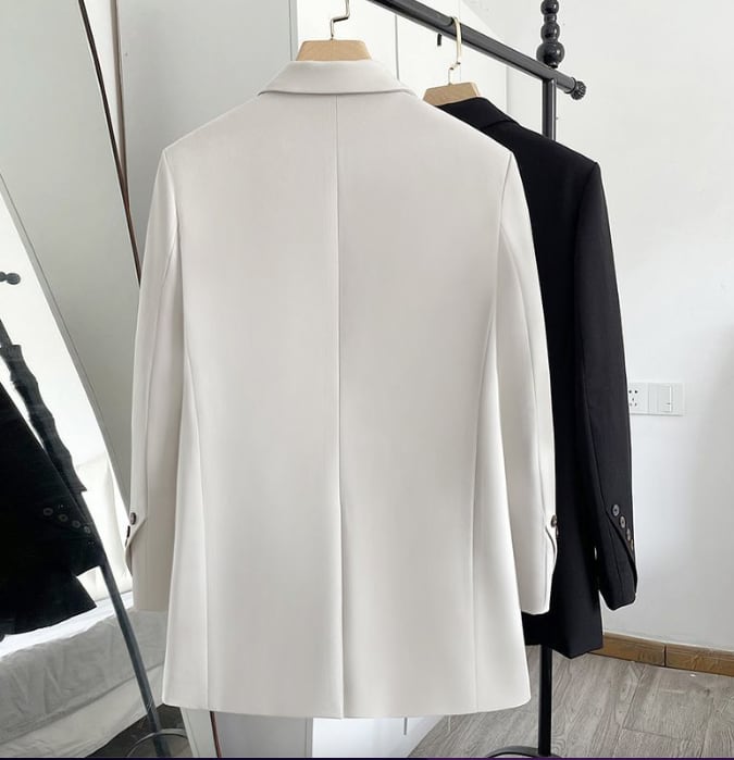 Vネックの深めな開きとテーラードカラーが顔まわりをシャープに見せ、シングルボタンのシンプルなデザインがきちんと感と抜け感を両立。