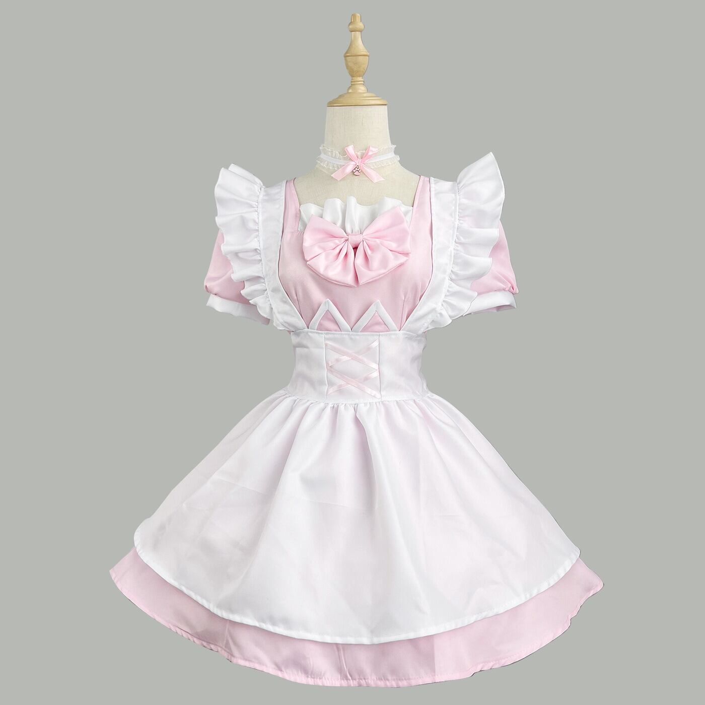 華やかさとキュートさを兼ね備えたメイド服ワンピース!ショート丈の膝上デザインは、フリルやリボンが魅力的に映え、ラブリーで個性的な印象を与えてくれます。ウエストマークが施されたAラインシルエットは、スタイルアップ効果もあり、美脚を引き立てるデザインです。春夏秋冬、オールシーズン着用可能なシーズンレスアイテムとして、祭りや文化祭、パーティー、ライブ、コスプレイベントなど、様々なシーンに最適です。