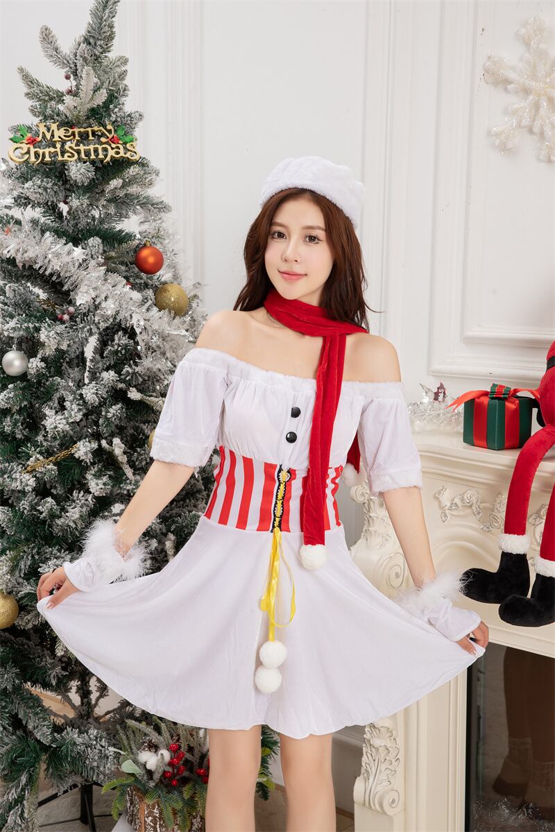 レディース ワンピース セットアップ ミニ 半袖 オフショルダー フレア Aライン ウエストマーク ふわふわ ハイウエスト 編み上げ レースアップ 透け感 異国風 薄手 かわいい ガーリー 個性的 存在感 抜け感 ラブリー キュート ロマンティック セクシー 色気 華やか ファンタジー 可愛い センシュアル ストライプ 冬 クリスマス パーティー イベント 女子会 インスタ映え スタイルアップ 雪だるま スノーマン サンタクロース サンタコス コスチューム 衣装 仮装 ゆったり フリーサイズ ホワイト