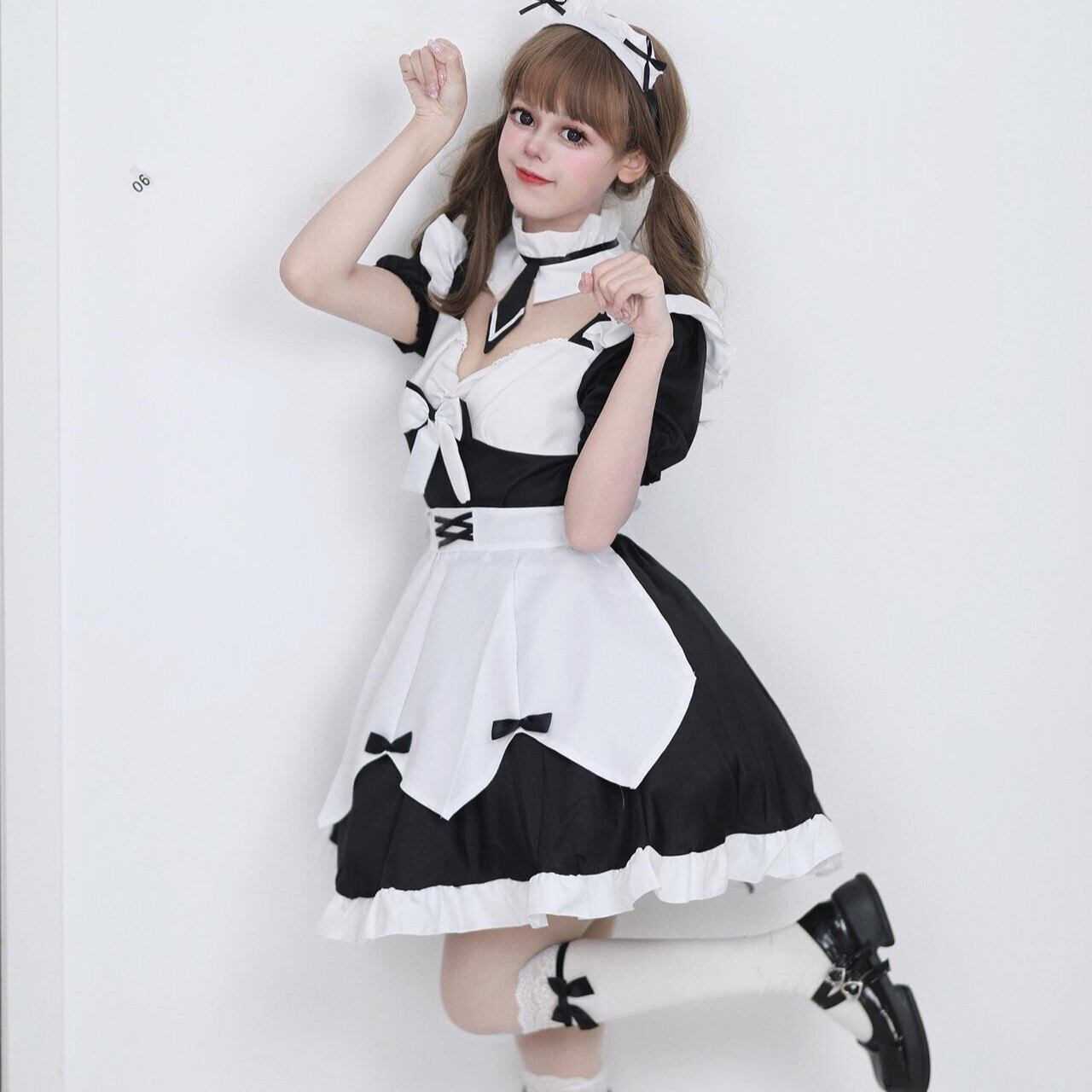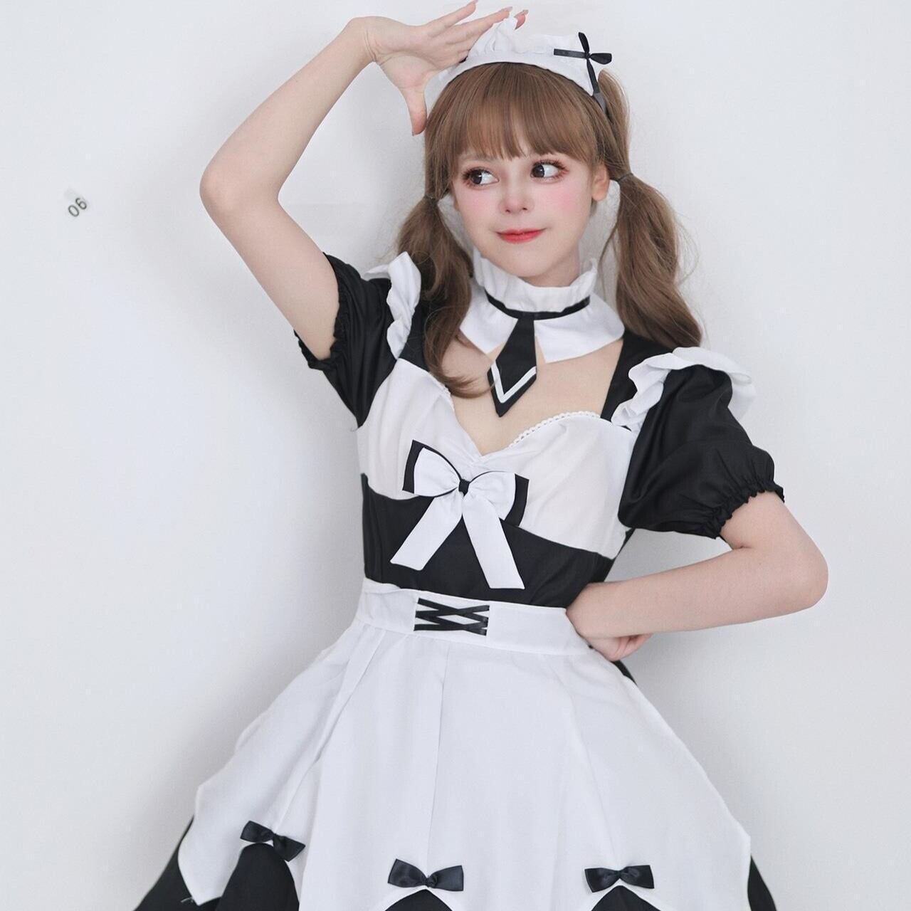 大人可愛いデザインのメイド服。ショート丈とAラインシルエットが特徴で、膝上のフリルが可愛らしさを引き立てます。ウエストマークにより、女性らしいラインを強調しつつも、体型カバーも実現。上品でありながらもクールさを兼ね備えた一着で、様々なイベントやパーティー、コスプレにおすすめです。春夏秋冬、オールシーズンで着用可能なシーズンレスなデザインで、どんなシーンでも活躍します。