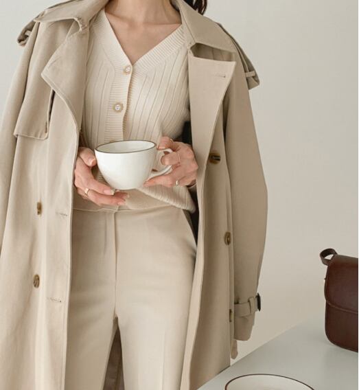 異国風のムードとプレッピーな気品が漂う、トレンド感と定番を兼ね備えた上品トレンチ。