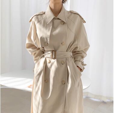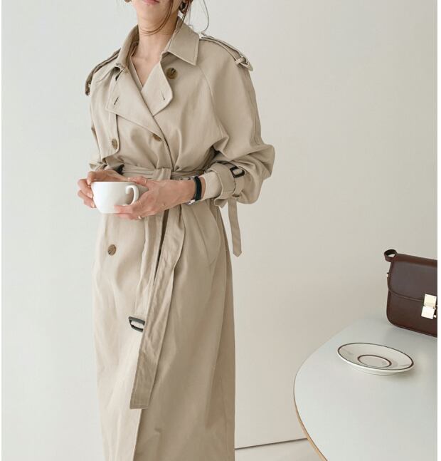 レディース コート トレンチ 膝下 長袖 襟付き 角襟 ダブルプレスト Xライン ベルト ウエストマーク ポケット ハイウエスト 前開き 異国風 コンサバ ボタン シンプル 上品 かっこいい レトロ クール 都会的 クラシカル ベーシック プレッピー トラッド 無地 春 秋 ママ 20代 30代 40代 50代 オフィス ビジネス OL 通勤 お出かけ 旅行 レストラン 休日 ショッピング アースカラー 重ね着 コーデ 体型カバー 普段使い 着回し トレンド 流行 定番 格上げ S M ベージュ カーキ