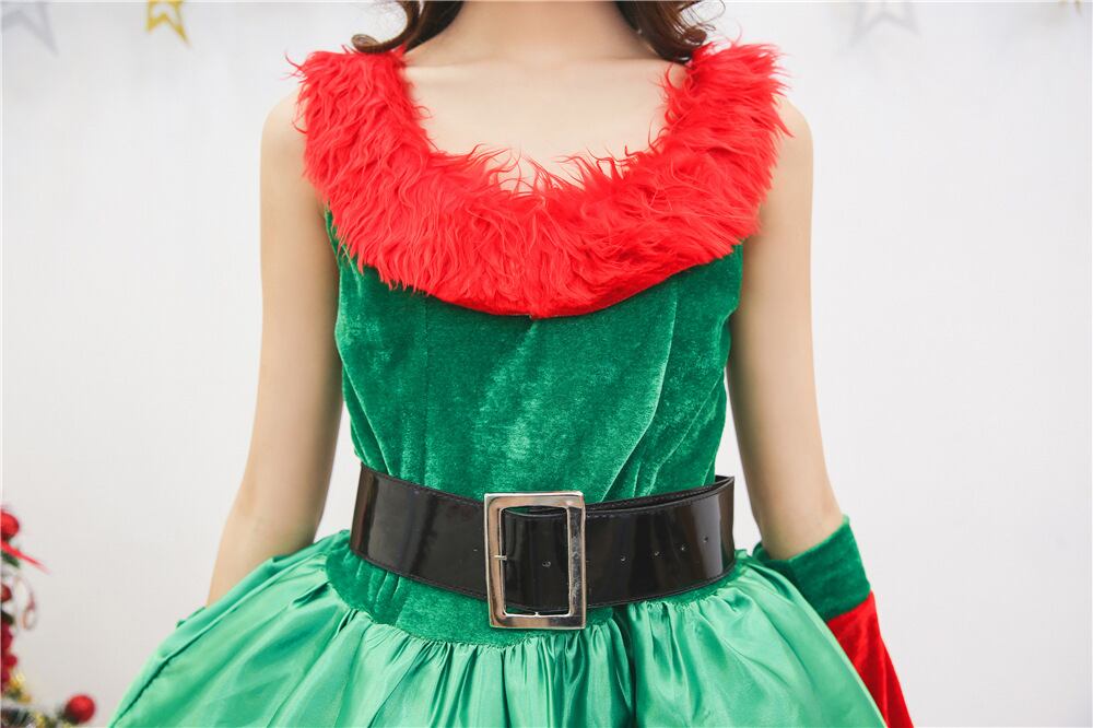 レディース ワンピース セットアップ アクセサリー ミニ ショート ノースリーブ フレア Aライン ウエストマーク 異国風 切り替えデザイン バイカラー ファー ベロア サテン チュール ベルト付き かわいい おしゃれ レトロ ガーリー 個性的 主役級 存在感 ラブリー キュート クラシカル ロマンティック 華やか 可愛い 冬 クリスマス ホリデー パーティー イベント 女子会 コスプレ モテ インスタ映え スタイルアップ サンタクロース サンタコス コスチューム 衣装 フリーサイズ レッド グリーン