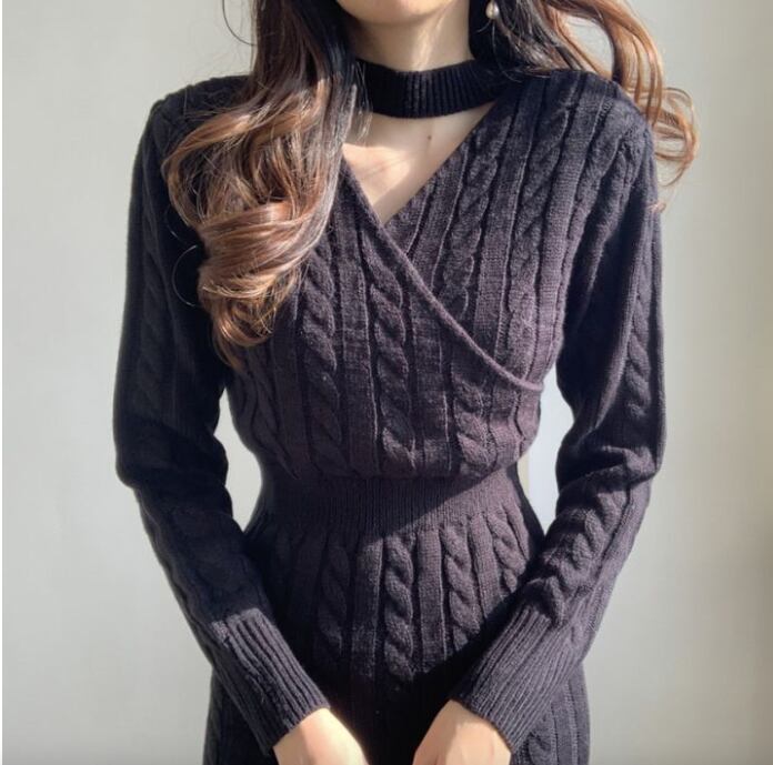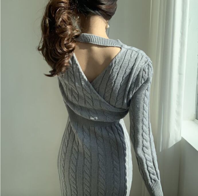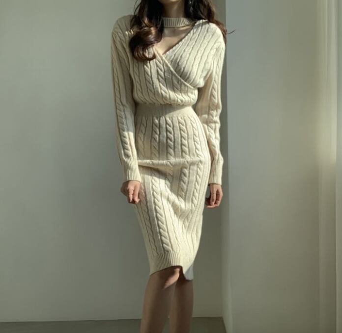 前後2way レディース ワンピース ニットワンピ 膝丈 膝下 ミディ ミドル 長袖 ドルマンスリーブ カシュクール クルーネック 襟なし タイト スリム 細身 スリット フェミニン ウエストマーク バックコンシャス ハイウエスト ケーブルニット 大人可愛い きれいめ シンプル 上品 おしゃれ こなれ感 ラフ エレガント ラグジュアリー セクシー 色気 リュクス ケーブル柄 総柄 冬 ホリデー ママ OL デート お出かけ 休日 ショッピング 着回し フリーサイズ 黒 ブラック グレー ベージュ