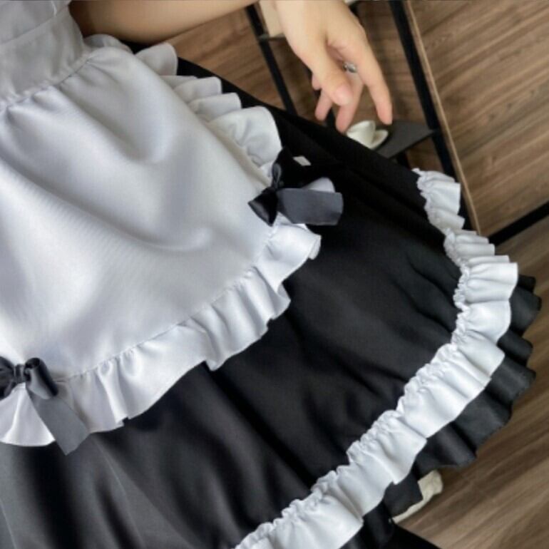 エレガントで個性的な魅力を引き出す、メイド服風のワンピース!フリルたっぷりのミニショートデザインが、あなたのカジュアルさとおしゃれ感を盛り上げます。ハロウィンや広告イベント、文化祭やパーティーで主役になれること間違いなしの一着です!
