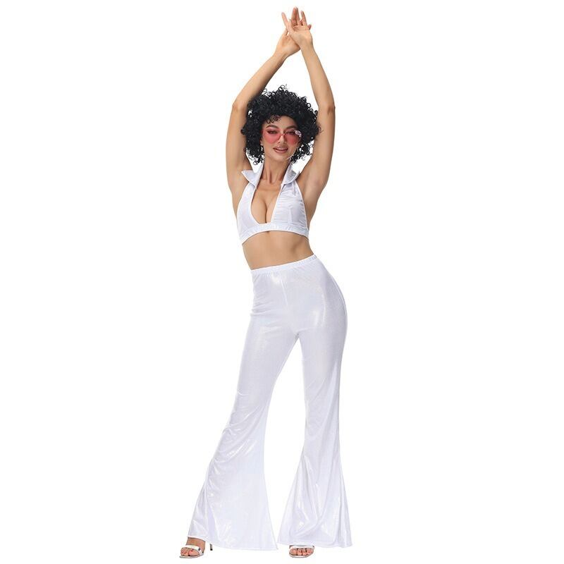 このダンス衣装は、イベントやパーティー、発表会など、様々なシーンで主役となること間違いなしの素敵な一着です!ノースリーブのホルターネックデザインと背中開きが色気を演出し、ロングパンツが美脚効果を引き出します。カジュアルでありながら、おしゃれでクールな印象を与える、個性的なスタイルをお楽しみいただけます。