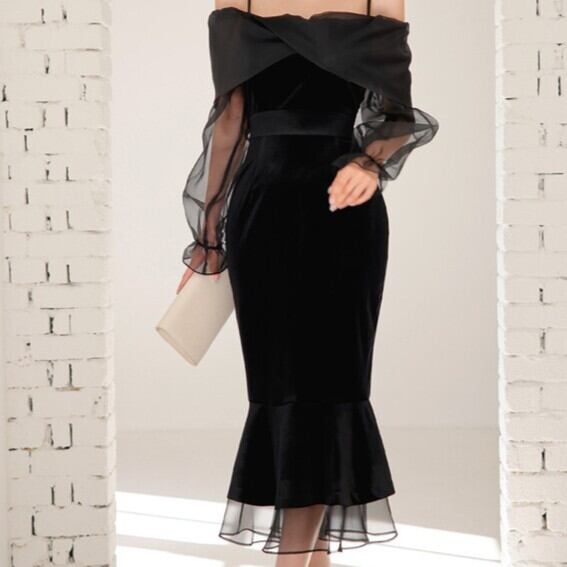レディース ドレス カラードレス ドレス ロングワンピース 膝下 長袖 スリム 細身 マーメイド 背中開き スレンダー 透け感 シースルー きれいめ おしゃれ エレガント 主役級 フォーマル プリンセス ロマンティック セクシー 色気 華やか 清潔感 無地 春 夏 秋 謝恩会 結婚式 二次会 披露宴 発表会 冠婚葬祭 お呼ばれ お色直し ママ 20代 30代 40代 50代 OL パーティー コンパ 婚活 クラブ キャバ ラウンジ 美脚 脚長 着回し 肌見せ 衣装 高見え S M L XL ブラック