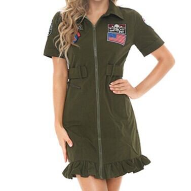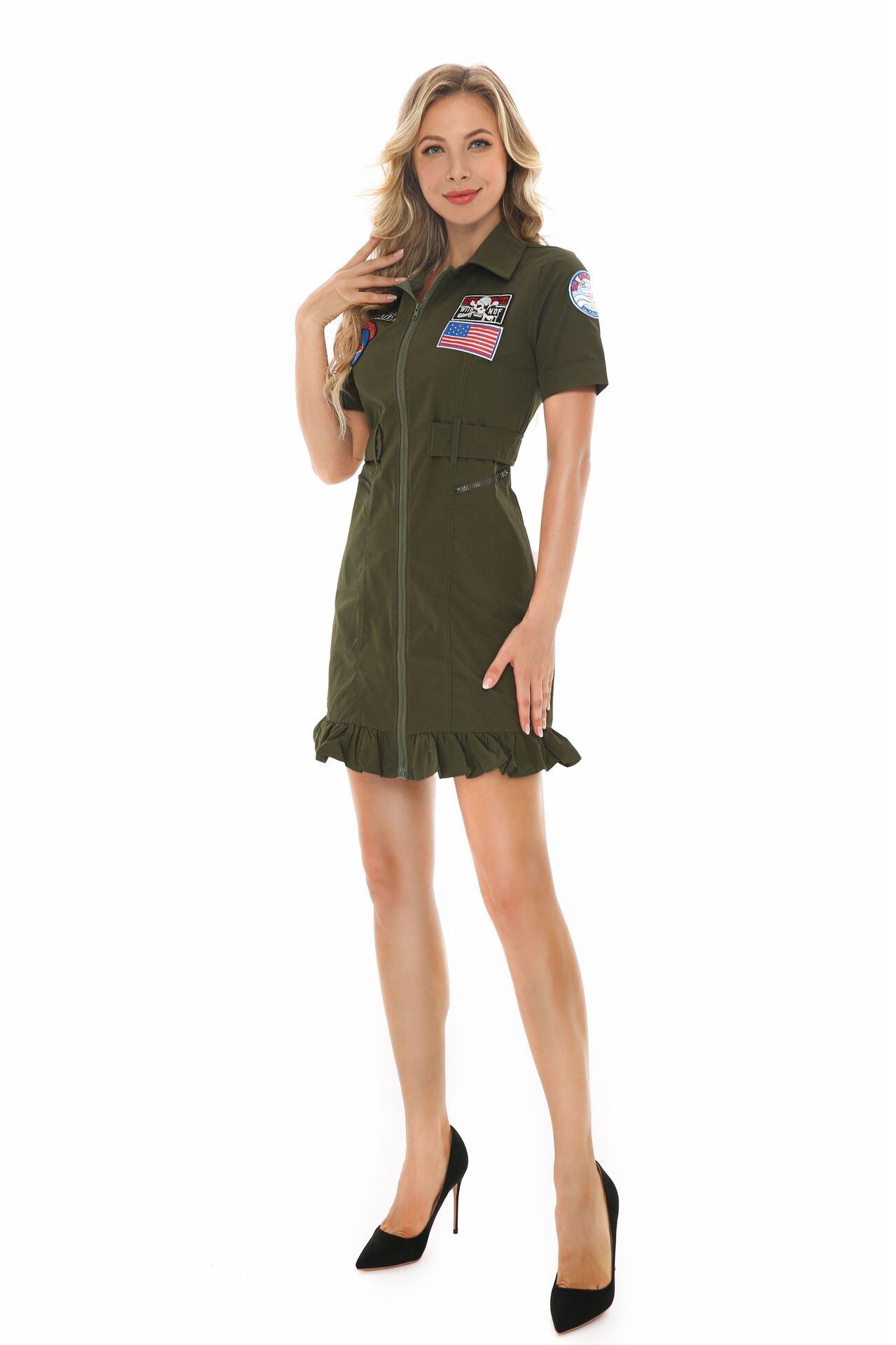 レディース ワンピース コスチューム パイロット風 ミニドレス ミニ 膝上 フリル袖 半袖 スリム 細身 ファスナー ウエストベルト シワになりにくい カジュアル おしゃれ かっこいい レトロ ボーイッシュ 個性的 主役級 存在感 アメリカン 快適 無地 ワッペン 春 夏 ハロウィン 祭り 10代 20代 30代 40代 OL 学生 パーティー イベント 女子会 コスプレ クラブ キャバ 舞台 ステージ テーマパーティー お揃い インスタ映え コスチューム 衣装 仮装 ダンス M L XL グリーン
