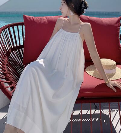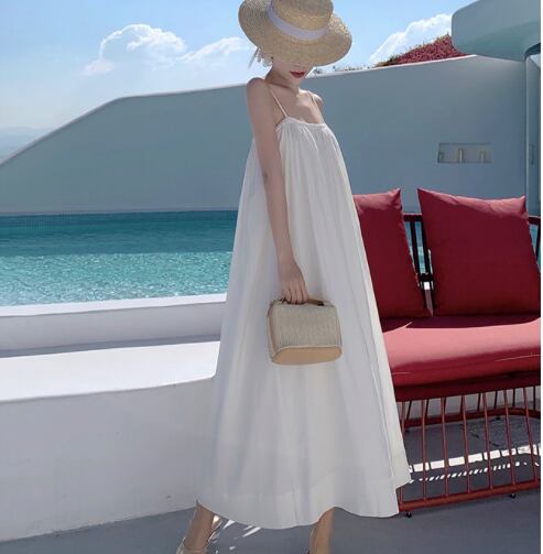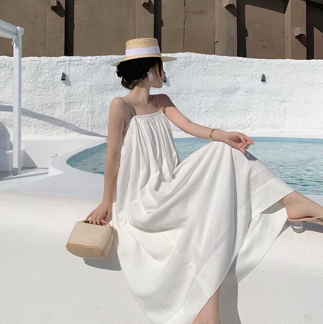 レディース ワンピース 膝下 ミモレ ミディ ミドル 袖なし キャミソール フレア Aライン 背中開き フェミニン ハイウエスト ギャザー かわいい 大人可愛い きれいめ シンプル 上品 こなれ感 ラフ ロマンティック ナチュラル 爽やか 清潔感 クリーン リュクス 無地 夏 デート お出かけ イベント リゾート 旅行 海 プール レストラン ビーチ 休日 バカンス 高原 ホテル 楽ちん 体型カバー スタイルアップ 肌見せ リラックス M L ゆったり 白 ホワイト
