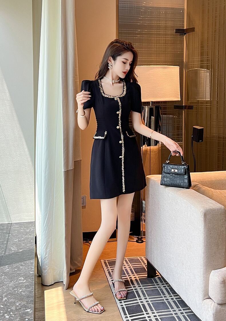 レディース ミニドレス ミニ 半袖 パフスリーブ スクエアネック Aライン ギャザー フロントボタン きれいめ 上品 おしゃれ アジアン 個性的 クール モード系 エレガント 存在感 フォーマル 都会的 セクシー 清潔感 無地 春 夏 会議 MTG ミーティング プレゼン 演奏会 お呼ばれ ママ 20代 30代 40代 50代 ビジネス OL お出かけ パーティー イベント レストラン 女子会 ホテル 発表会 クラブ キャバ ラウンジ ディナー セミフォーマル 韓国 美脚 高見え S M L ブラック