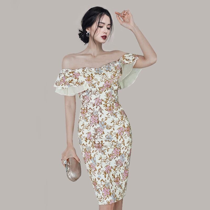 レディース ワンピース ドレス カクテルドレス シースドレス 膝丈 膝上 ミディ 半袖 フレアスリーブ オフショルダー タイト スリム フェミニン ボディコンシャス スレンダー フリル ハイウエスト 透け感 かわいい 大人可愛い 上品 ガーリー エレガント キュート ロマンティック セクシー 色気 シック 華やか ドレッシー センシュアル 花柄 フラワー 春 夏 同窓会 お呼ばれ デート お出かけ パーティー ホテル モテ トレンド スタイルアップ 肌見せ S M L XL オフホワイト マルチカラー