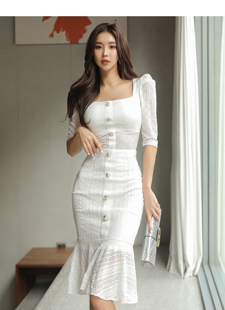 レディース スカート トップス スーツ ツーピース スーツドレス 膝丈 ミディ 7分袖 タイト レース 刺繍 フリル ハイウエスト 透け感 ボタン かわいい 大人可愛い きれいめ シンプル カジュアル 上品 おしゃれ かっこいい エキゾチック クール エレガント キュート 色気 春 夏 デート パーティー イベント レストラン 休日 ホテル 発表会 コンサート コーデ 楽ちん 美脚 脚長 着回し モテ 清楚 スタイルアップ 肌見せ コスチューム S M L XL 白 ホワイト ベーシックカラー 大人カラー