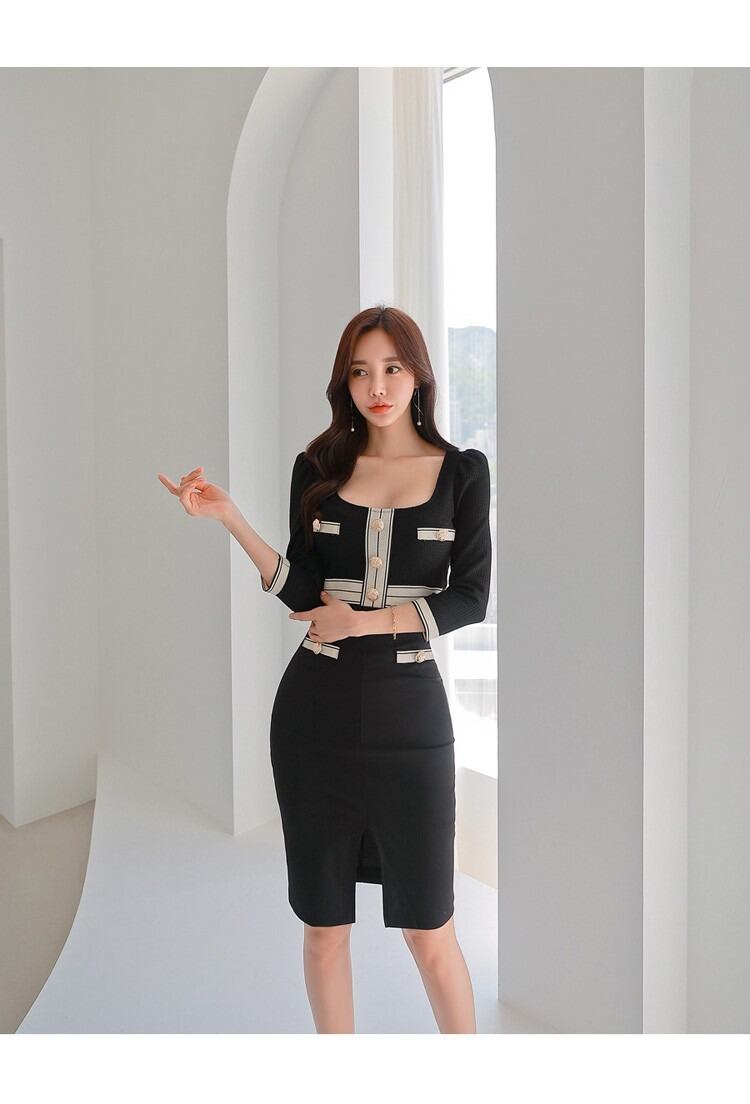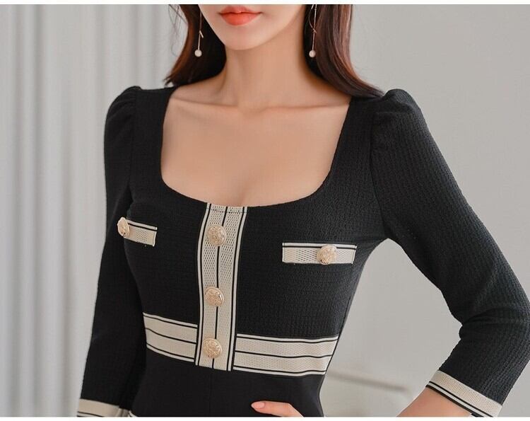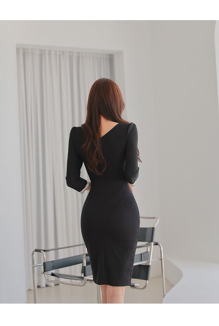 レディース ワンピース ショート 膝上 7分袖 ラウンドネック タイト スリム 細身 スリット ハイウエスト ボタン かわいい 大人可愛い きれいめ シンプル カジュアル 上品 おしゃれ かっこいい レトロ こなれ感 ラフ クール エレガント ナチュラル セクシー 色気 可愛い 清潔感 春 秋 デート お出かけ パーティー イベント レストラン 女子会 休日 ホテル ショッピング 韓国 コーデ 楽ちん 美脚 脚長 モテ 清楚 スタイルアップ 肌見せ コスチューム S M L XL 黒 ブラック 大人カラー