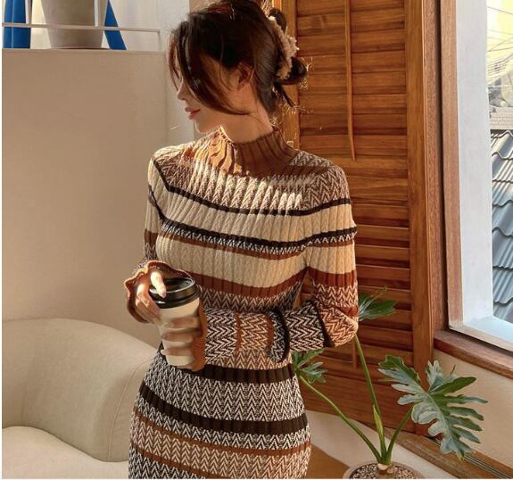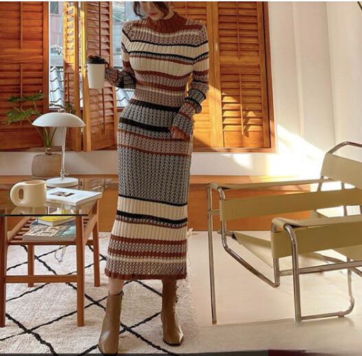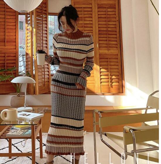 レディース ワンピース ニットワンピ 膝下 ミモレ ミディ ミドル 長袖 ハイネック ボトルネック タイト スリム 細身 フェミニン ボディコンシャス スレンダー ハイウエスト リブ 配色 かわいい 大人可愛い シンプル カジュアル 上品 おしゃれ レトロ こなれ感 ラフ キュート 可愛い ボーダー 総柄 秋 冬 10代 20代 30代 ママ 学生 通学 デート お出かけ 公園 女子会 休日 ショッピング カフェ 楽ちん 普段使い スタイルアップ リラックス フリーサイズ アースカラー マルチカラー