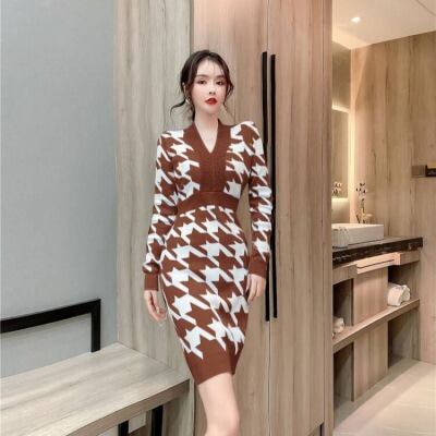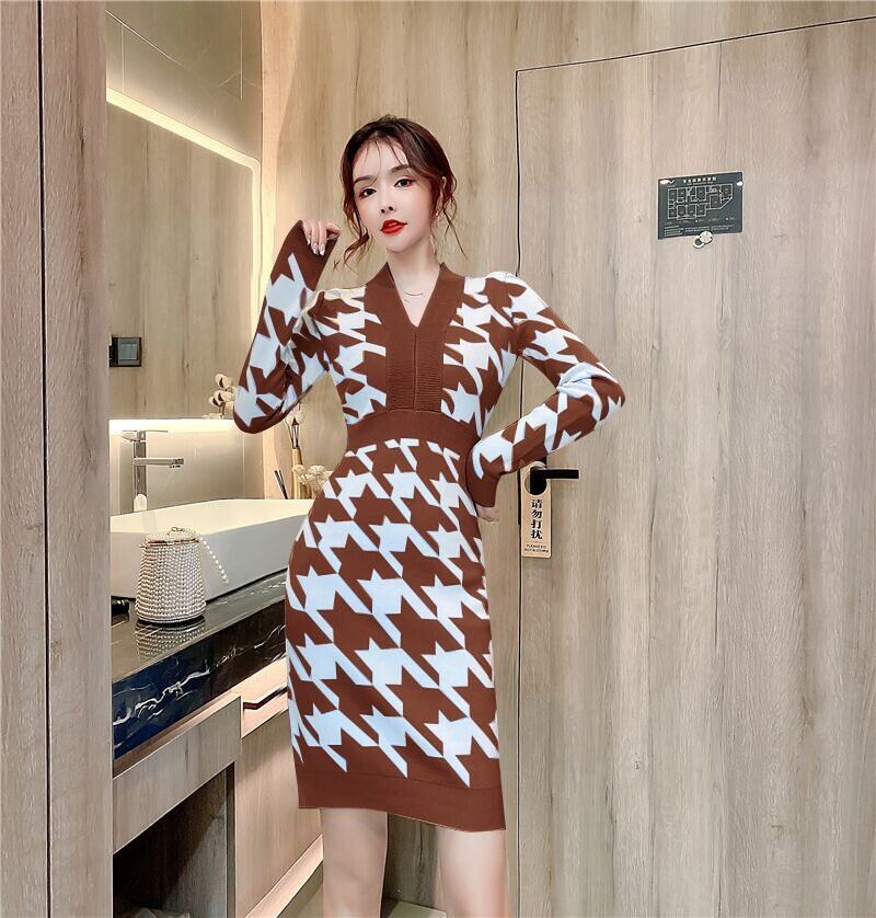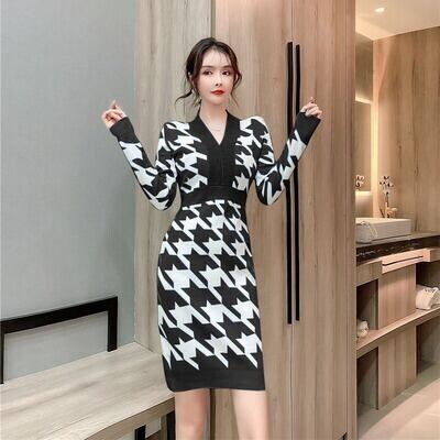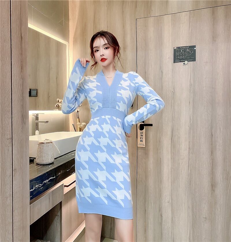 レディース ワンピース ニットワンピ ショート 長袖 Vネック タイト スリム ウエストマーク かわいい 大人可愛い きれいめ シンプル カジュアル 上品 おしゃれ かっこいい レトロ こなれ感 ラフ ルーズ クール エレガント モダン 抜け感 ナチュラル セクシー 色気 可愛い 千鳥格子 春 秋 デート お出かけ パーティー イベント レストラン 女子会 休日 ショッピング コーデ 楽ちん 暖かい 体型カバー 美脚 脚長 普段使い モテ 清楚 スタイルアップ フリーサイズ ブラック ピンク 水色 レッド