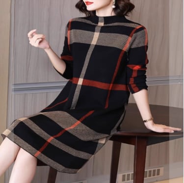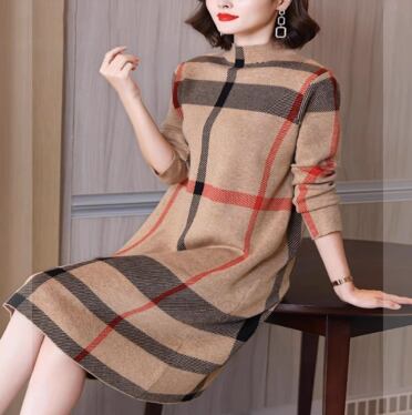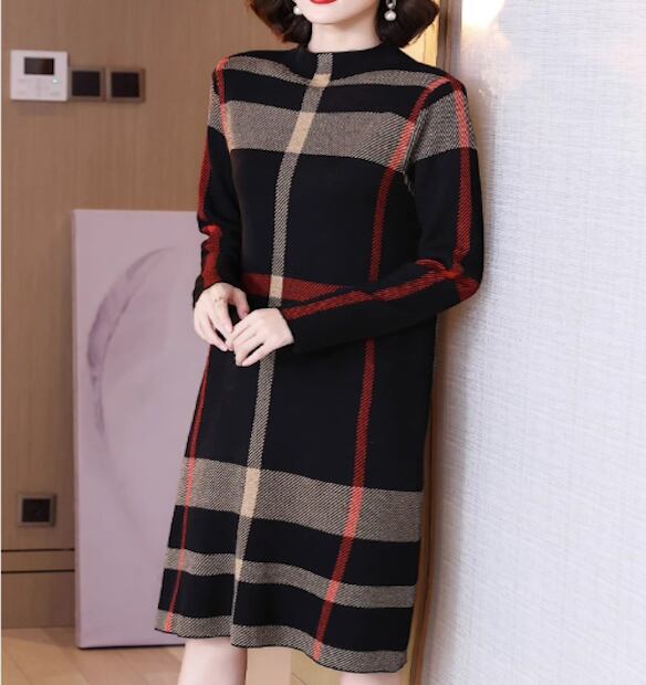 優しいモックネックとふんわりフレアなAラインが、秋冬の装いを上品に彩るチェック柄ワンピース。