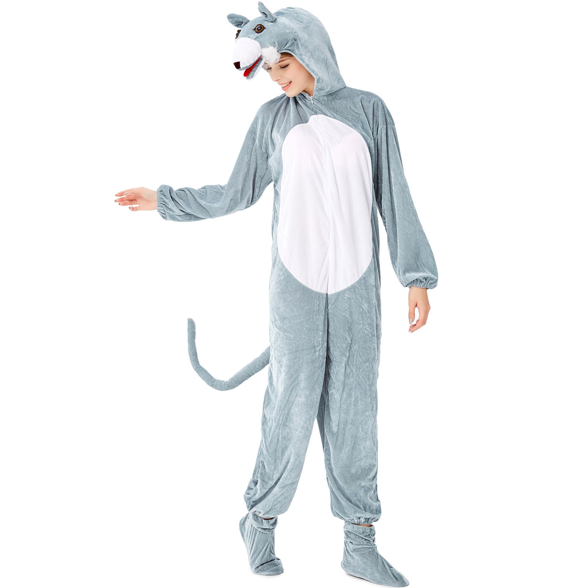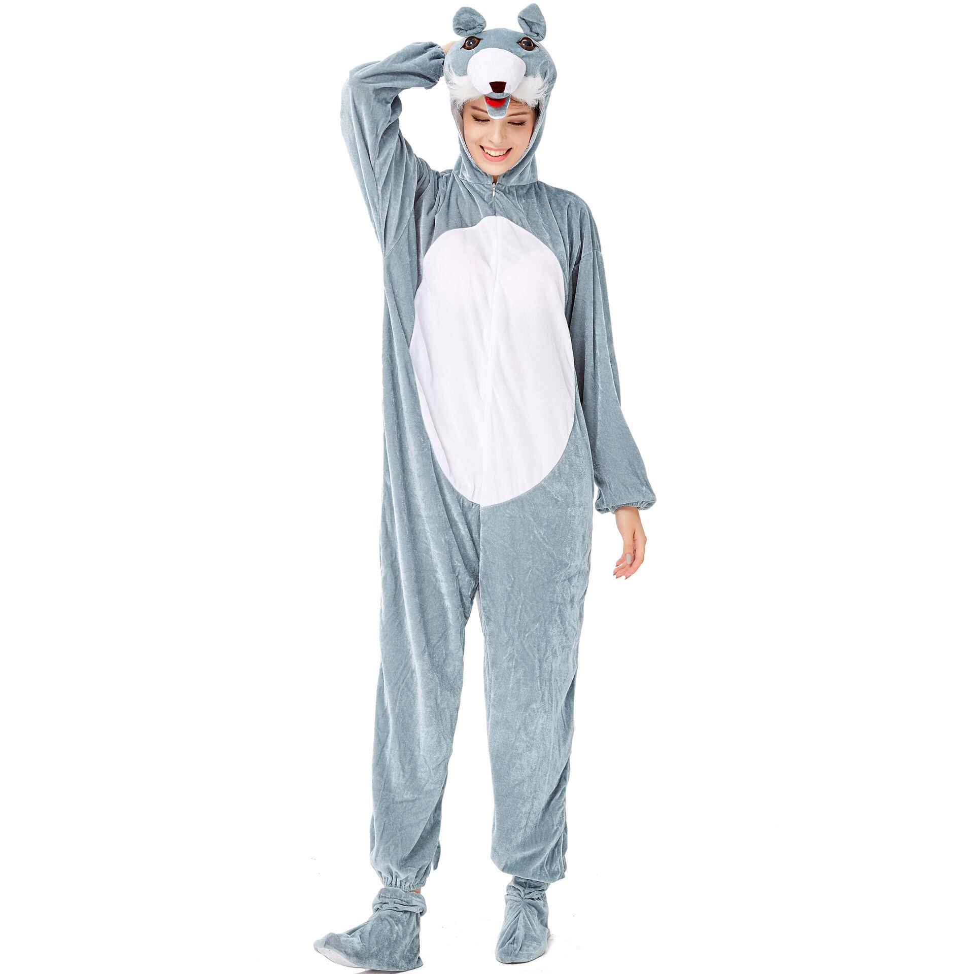 レディース 着ぐるみ セットアップ オールインワン ツーピース ジャンプスーツ フルレングス 長袖 フード ふわふわ フリース かわいい シンプル カジュアル こなれ感 個性的 存在感 抜け感 キュート アクティブ ワイルド 可愛い 秋 冬 ハロウィン 文化祭 学園祭 男女兼用 ユニセックス 大人用 パーティー イベント 発表会 コスプレ 演劇 舞台 ステージ パフォーマンス 楽ちん 定番 狼 オオカミ ウルフ Wolf 童話 悪役 コスチューム 衣装 仮装 リラックス M L ゆったり ゆる グレー