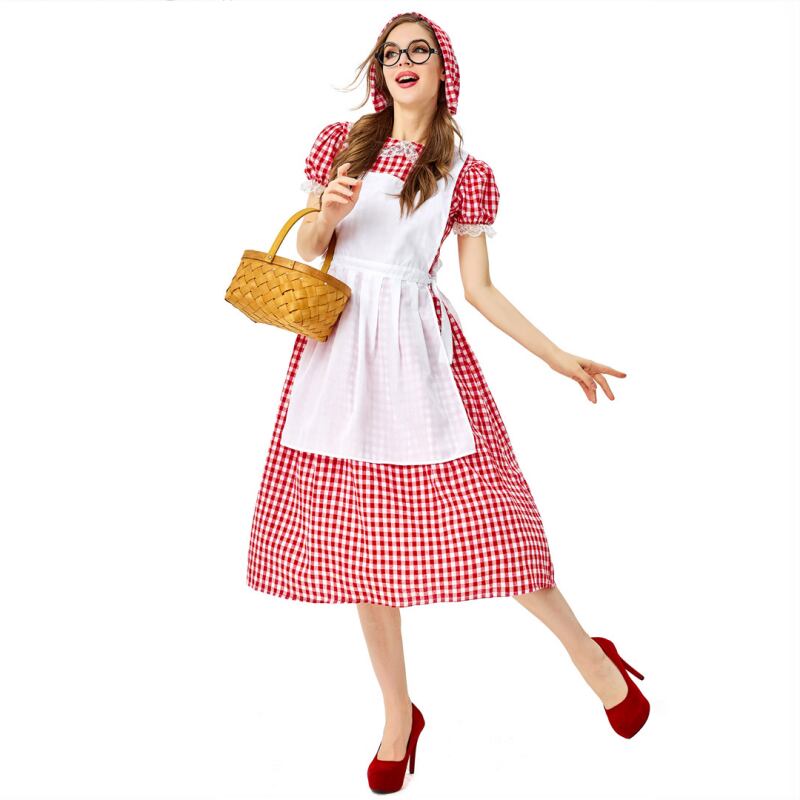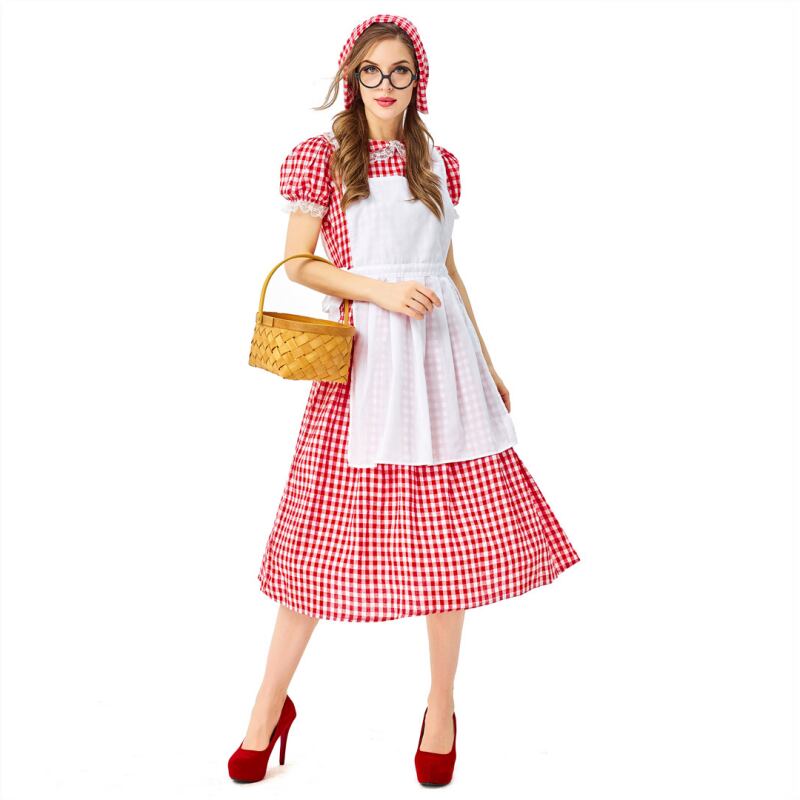 レディース ワンピース セットアップ 膝下 ミモレ ミディ 半袖 パフスリーブ フレア Aライン レース リボン ハイウエスト かわいい レトロ ガーリー 主役級 存在感 ラブリー キュート クラシカル カントリー ロマンティック 牧歌的 華やか 可愛い ギンガムチェック 春 夏 秋 ハロウィン 文化祭 学園祭 大人用 パーティー イベント コスプレ 演劇 舞台 モテ 清楚 インスタ映え 定番 スタイルアップ コスチューム 衣装 仮装 小物付き 赤ずきん 童話 M XL ホワイト レッド バイカラー