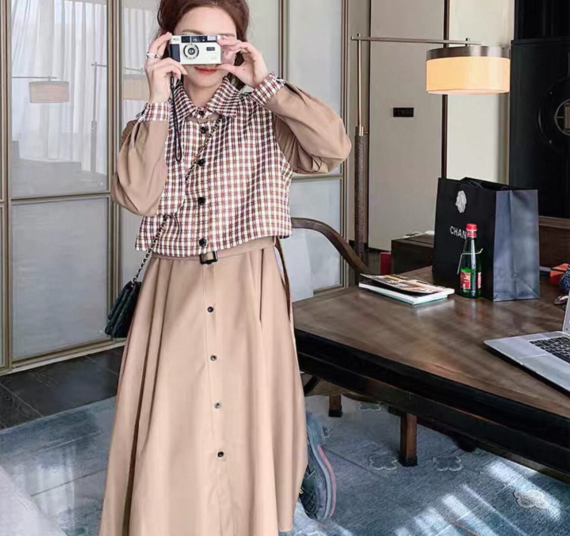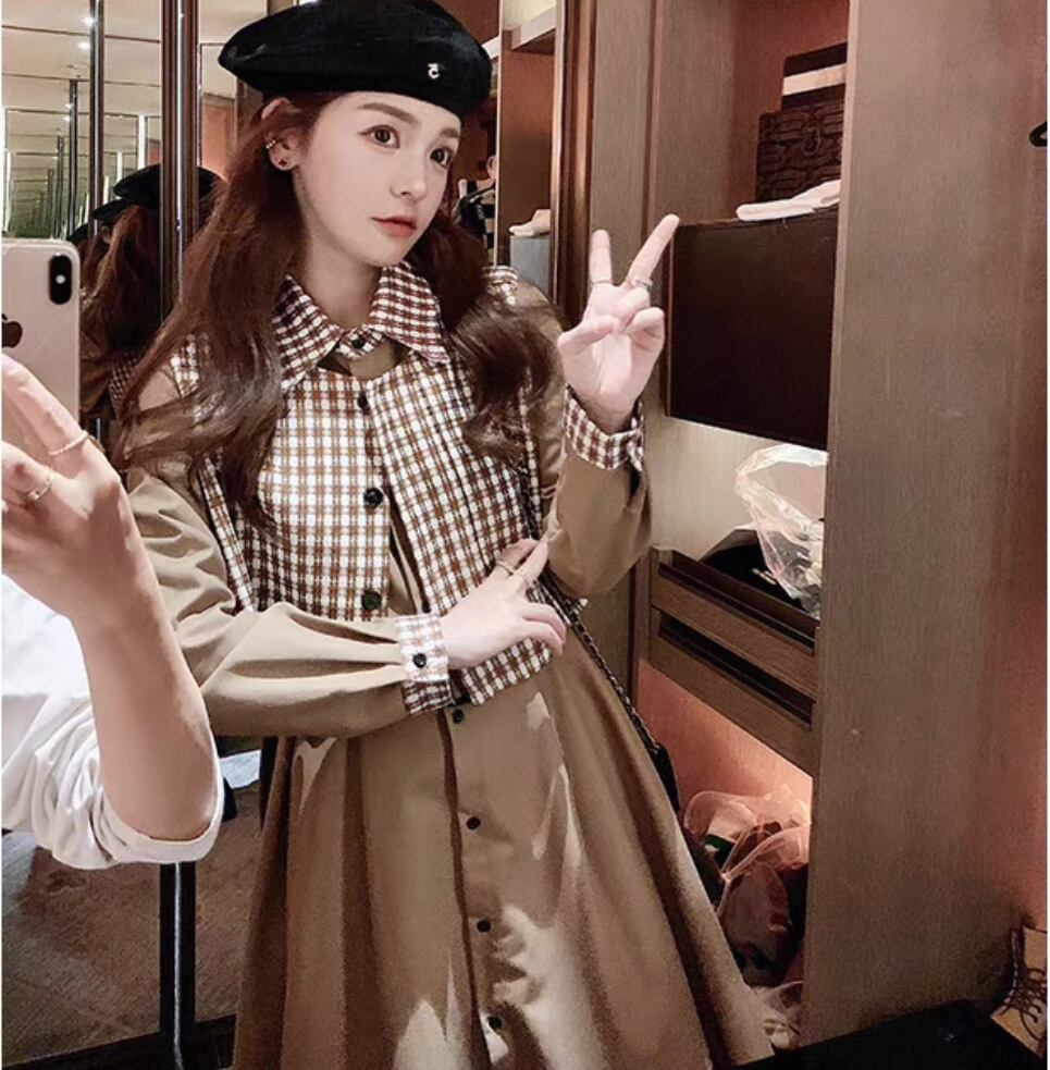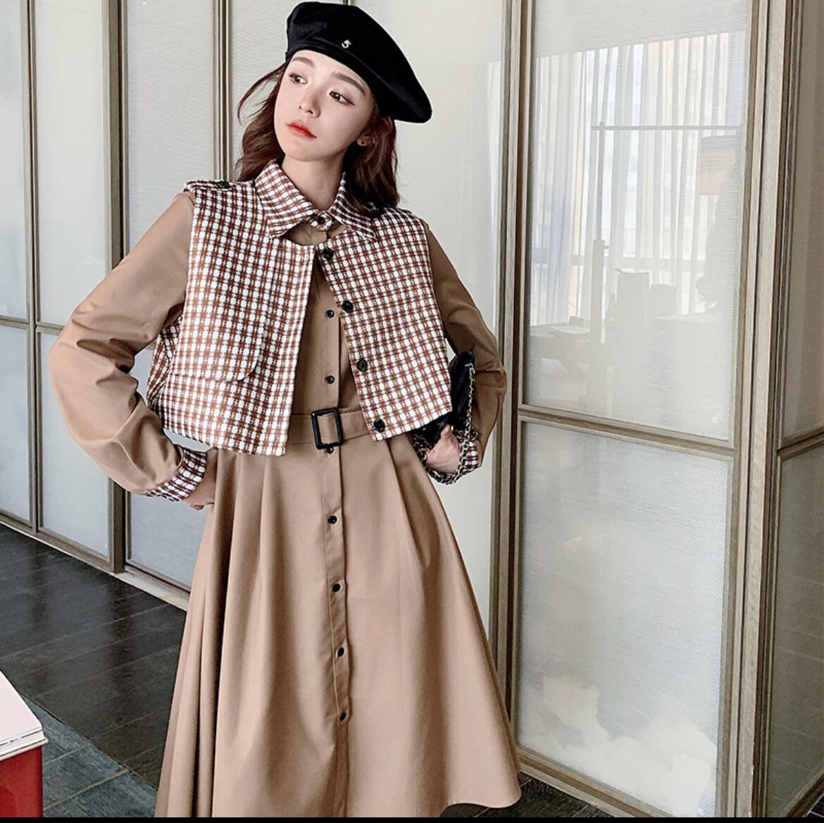 ワンピース オールインワン レディース シャツワンピース ミモレ ロング 長袖 襟付き レギュラーカラー Aライン ウエストマーク ハイウエスト 前開き 大人可愛い きれいめ シンプル カジュアル おしゃれ こなれ感 ラフ ガーリー 存在感 クラシカル チェック 春 秋 冬 ロングシーズン オフィス OL 通勤 デート お出かけ イベント 女子会 休日 ショッピング カフェ ランチ 韓国 オルチャン コーデ 楽ちん 普段使い 着回し レイヤード 清楚 トレンド スタイルアップ S M L XL ブラウン