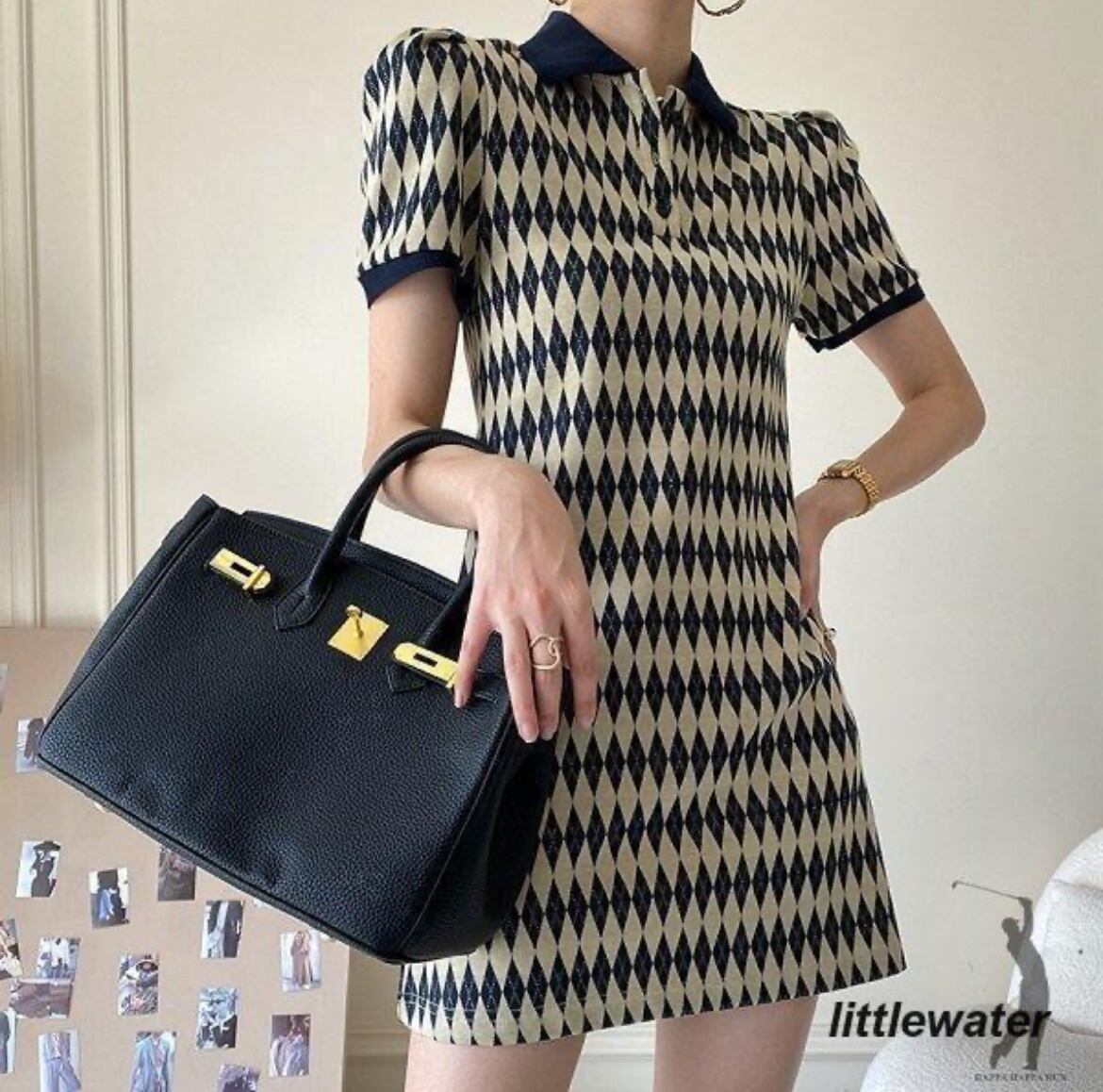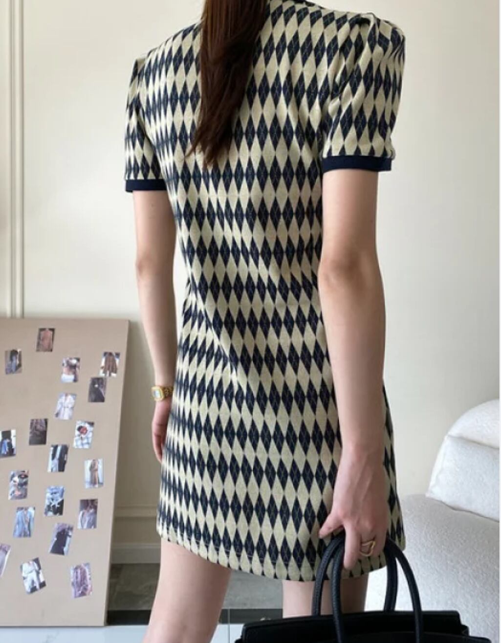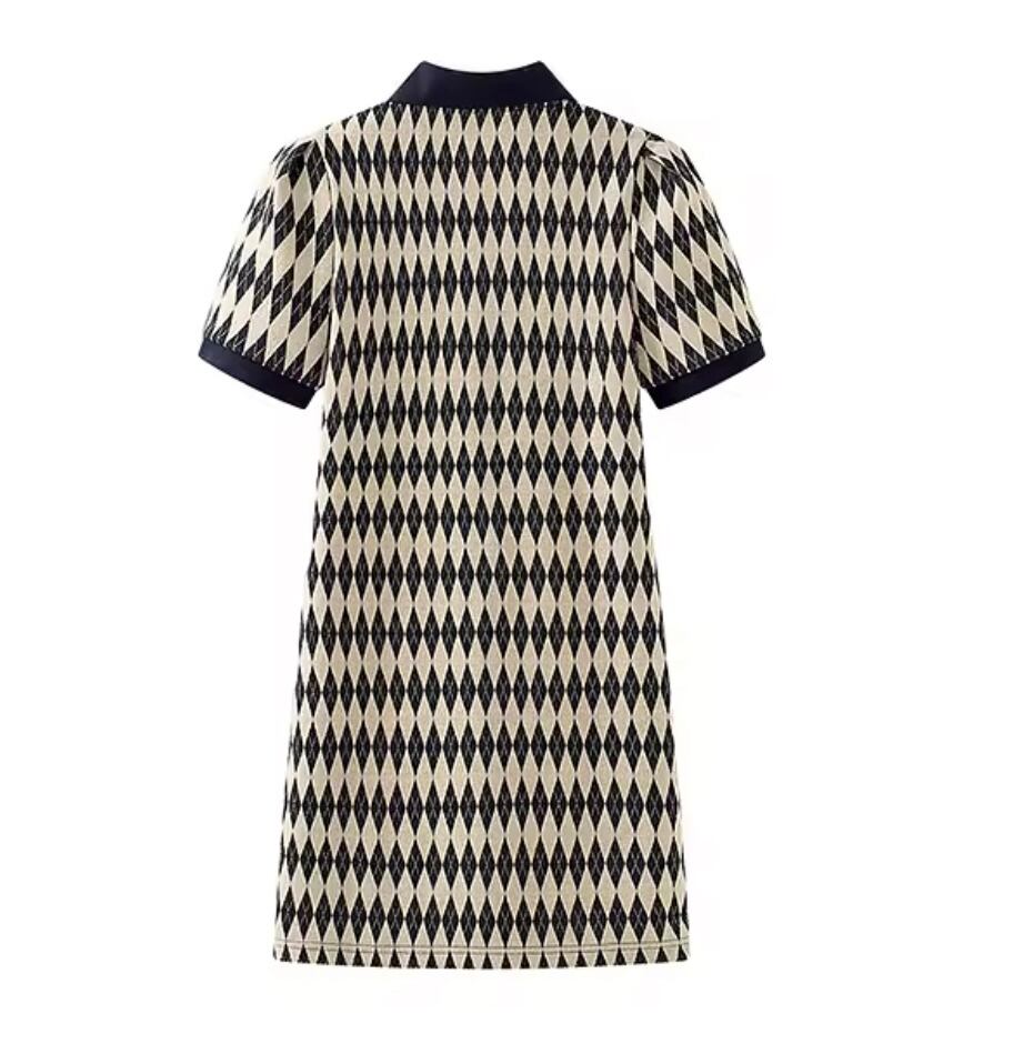 ワンピース ニットポロワンピース レディース ポロシャツ ミニ 半袖 襟付き ポロカラー タイト フェミニン フィット 異国風 大人可愛い カジュアル 上品 おしゃれ こなれ感 ラフ ガーリー 個性的 モード系 存在感 抜け感 クラシカル スポーティ アーガイル 春 夏 オフィス OL 通勤 デート お出かけ イベント 女子会 休日 ショッピング カフェ ランチ 韓国 オルチャン 楽ちん 脚長 普段使い 着回し トレンド スタイルアップ 格上げ S M L クリーム×ブラック