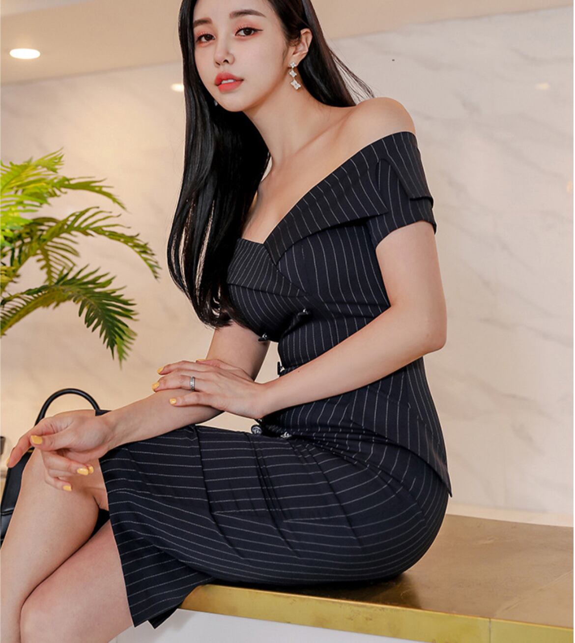 ワンピース オールインワン ドレス レディース ミニ 袖なし オフショルダー タイト フィット バックスリット ハイウエスト きれいめ シンプル 上品 おしゃれ かっこいい こなれ感 ラフ 個性的 クール モード系 エレガント 抜け感 セクシー 色気 ストライプ 春 夏 オフィス OL 通勤 デート お出かけ パーティー イベント レストラン 休日 ホテル ショッピング コンサート ディナー 韓国 オルチャン コーデ 楽ちん 脚長 普段使い 着回し トレンド スタイルアップ S M L XL ブラック