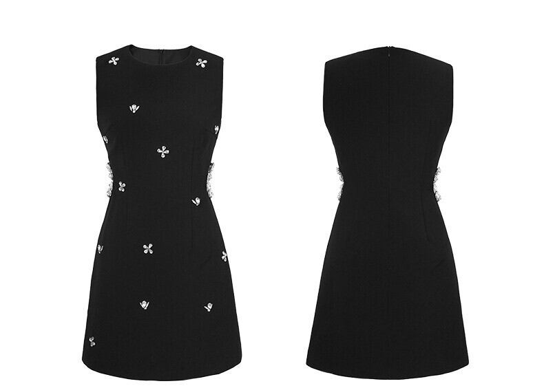 レディース ワンピース ドレス ショート 膝上 ノースリーブ ラウンドネック スリム かわいい 大人可愛い きれいめ シンプル カジュアル 上品 おしゃれ かっこいい レトロ こなれ感 個性的 クール モード系 エレガント 主役級 存在感 ロマンティック ナチュラル セクシー 色気 シック 華やか 可愛い ドレッシー 清潔感 春 夏 デート パーティー イベント レストラン ホテル コンサート コーデ 美脚 脚長 モテ 清楚 スタイルアップ 肌見せ S M 黒 ブラック ベーシックカラー 大人カラー