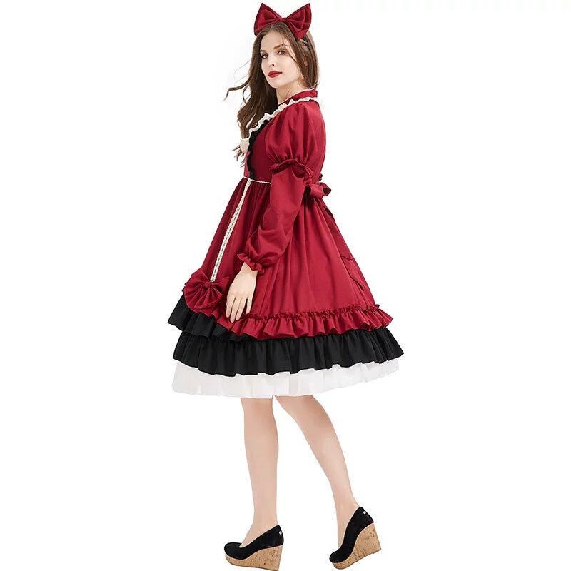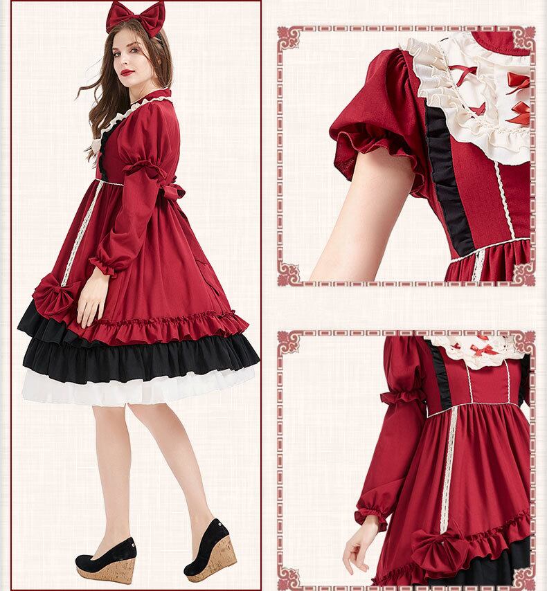 レディース ワンピース セットアップ ドレス 膝丈 膝上 ミディ 半袖 長袖 パフスリーブ フレア Aライン レース フリル リボン バックリボン ハイウエスト かわいい ガーリー 個性的 主役級 存在感 ラブリー キュート ロリータ プリンセス ロマンティック 華やか ドーリー 可愛い 春 夏 秋 冬 オールシーズン ハロウィン 文化祭 学園祭 大人用 パーティー イベント コスプレ インスタ映え スタイルアップ コスチューム 衣装 仮装 魔女 ウィッチ 魔法使い S M L ワインレッド バーガンディ