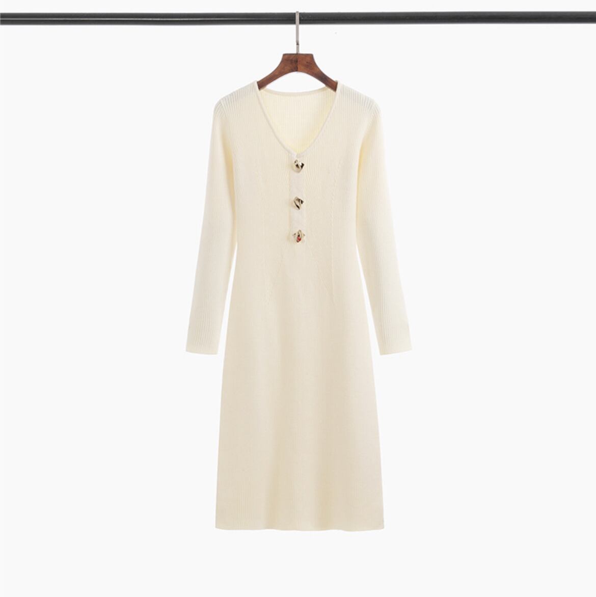 ワンピース オールインワン レディース ニットワンピース 膝丈 ミディ 長袖 Vネック タイト スリム 細身 フェミニン 切り替え 伸縮性 フィット ゴールドビジュー 大人可愛い きれいめ シンプル カジュアル 上品 おしゃれ こなれ感 ラフ モード系 存在感 抜け感 都会的 無地 秋 冬 オフィス OL 通勤 デート お出かけ イベント 女子会 休日 ショッピング カフェ ランチ 韓国 オルチャン コーデ 楽ちん 暖かい 脚長 トレンド スタイルアップ 高見え 格上げ S M L XL 白 ホワイト
