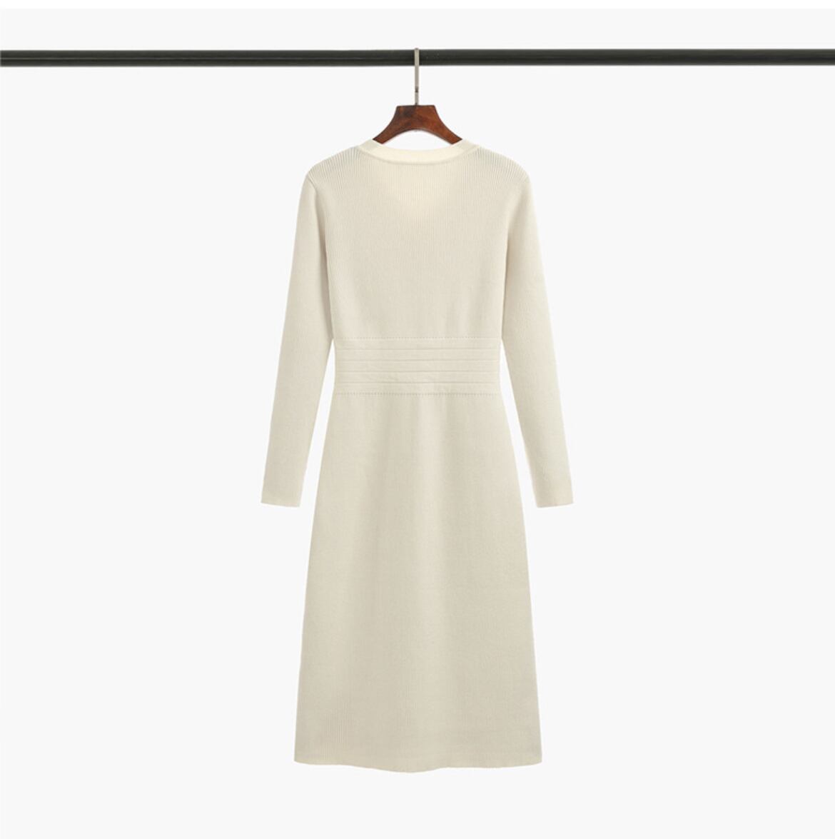 ワンピース オールインワン レディース ニットワンピース ミモレ ロング 長袖 Vネック タイト スリム 細身 フェミニン 切り替え 伸縮性 フィット リブニット 大人可愛い きれいめ シンプル カジュアル 上品 おしゃれ こなれ感 ラフ モード系 存在感 抜け感 都会的 無地 秋 冬 オフィス OL 通勤 デート お出かけ イベント 女子会 休日 ショッピング カフェ ランチ 韓国 オルチャン コーデ 楽ちん 暖かい 脚長 トレンド スタイルアップ 高見え 格上げ S M L XL 白 ホワイト