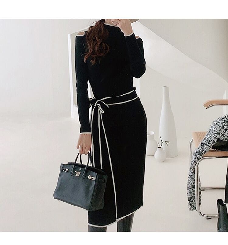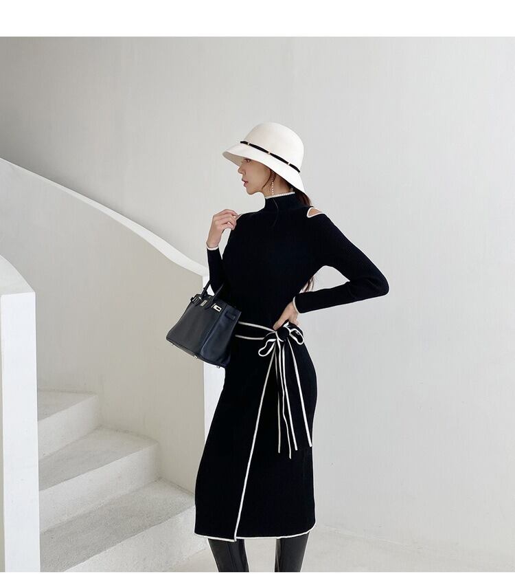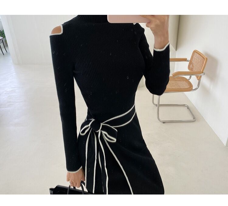 レディース ワンピース ドレス ニットワンピ 膝丈 長袖 ハイネック タイト スリム ウエストマーク ニット かわいい 大人可愛い きれいめ シンプル カジュアル 上品 おしゃれ かっこいい レトロ こなれ感 ラフ クール エレガント モダン ベーシック ナチュラル セクシー 色気 シック 可愛い 清潔感 無地 冬 デート お出かけ 休日 ショッピング コーデ 楽ちん 暖かい 脚長 普段使い モテ 清楚 スタイルアップ 肌見せ あったか 高見え フリーサイズ 黒 ブラック ベーシックカラー 大人カラー