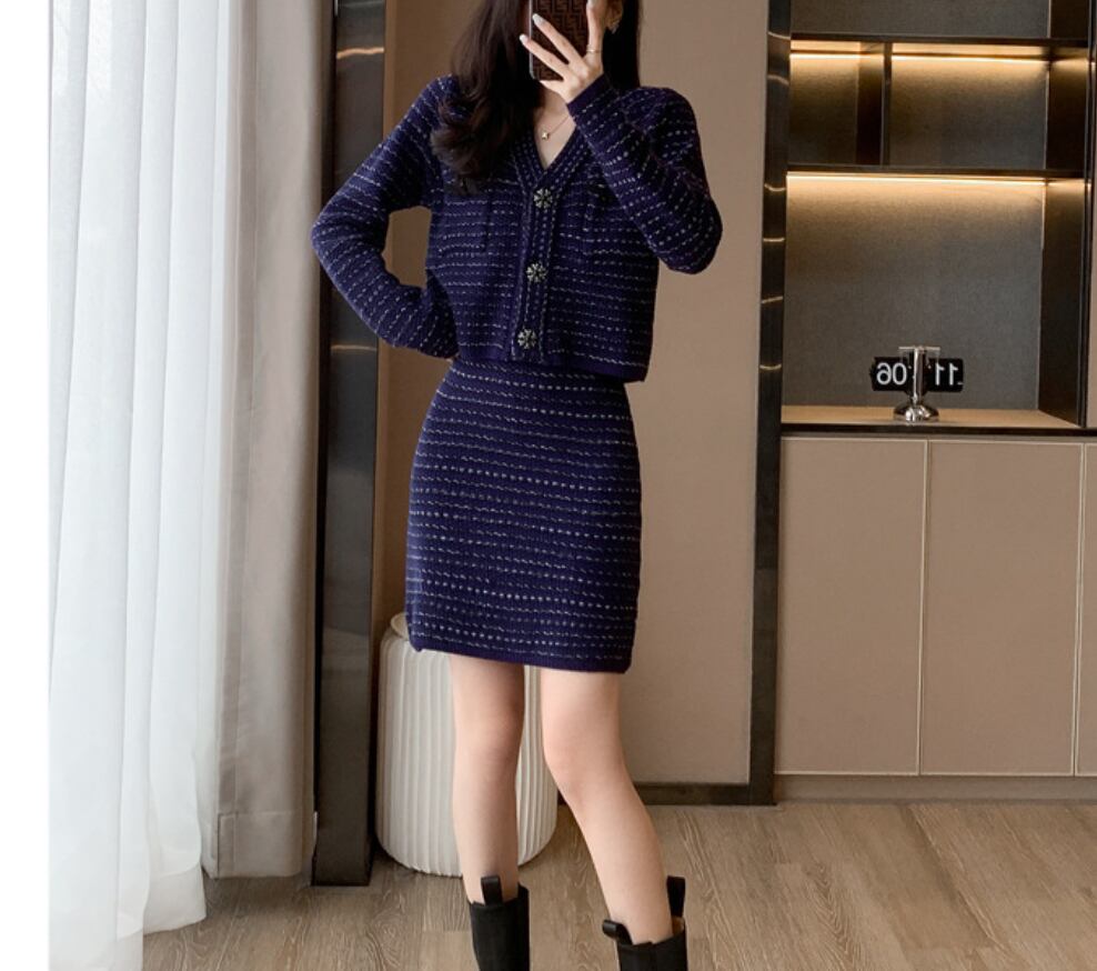 ジャケット カーディガン セットアップ ツーピース レディース ミニスカート ミニ 長袖 Vネック 襟なし フェミニン 前開き ツイード ボタン 大人可愛い きれいめ シンプル 上品 おしゃれ こなれ感 ラフ 個性的 モード系 エレガント 存在感 抜け感 アクティブ 華やか 若々しい 秋 冬 授業参観 オフィス OL 通勤 デート お出かけ イベント 女子会 休日 ショッピング カフェ ランチ 韓国 オルチャン コーデ 普段使い 着回し トレンド スタイルアップ 高見え 格上げ S M L XL ブルー