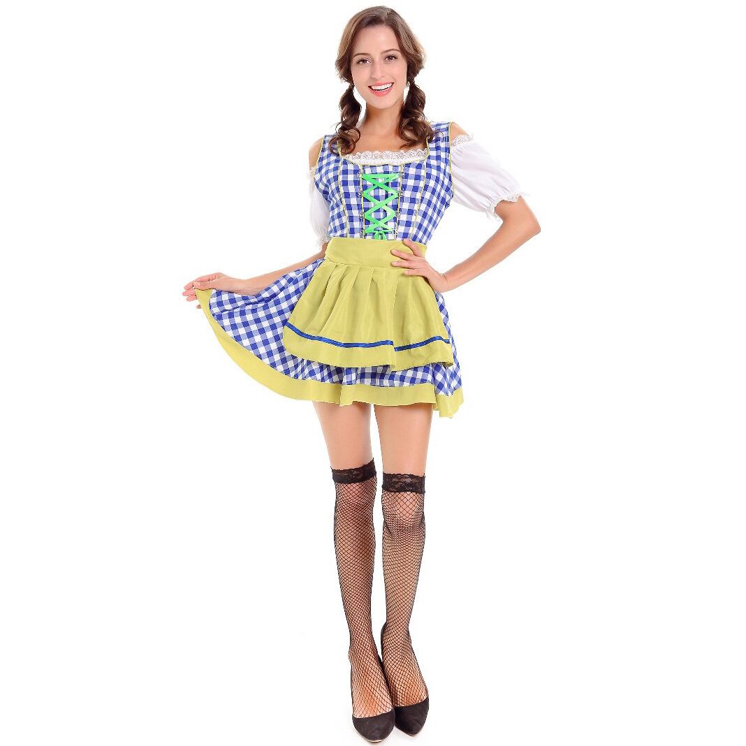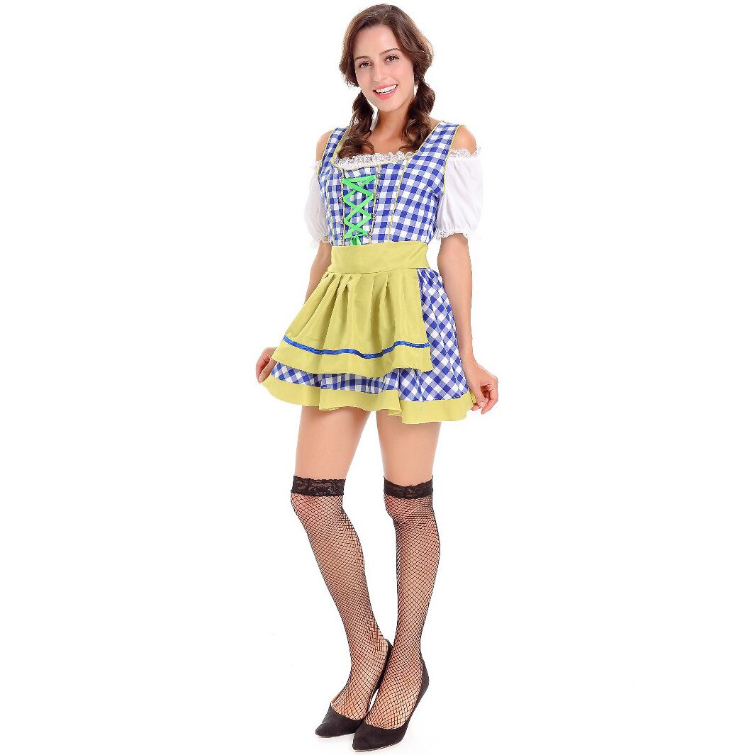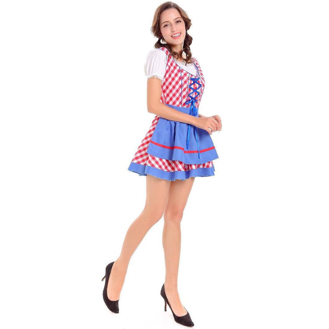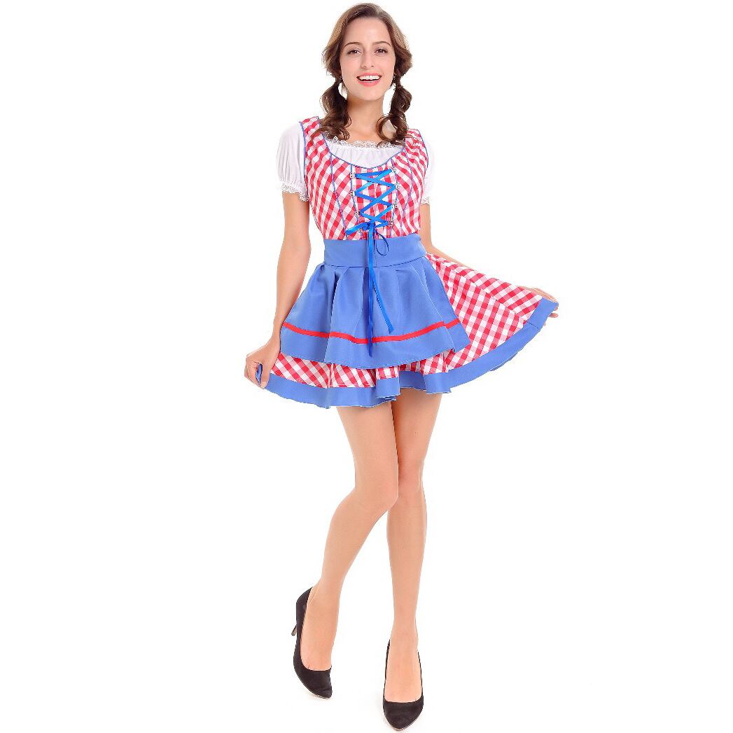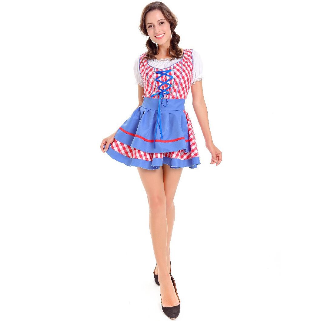 レディース セットアップ トップス ワンピース エプロン ミニ 半袖 パフスリーブ スクエアネック オフショルダー フレア レース バックリボン ハイウエスト レースアップ 異国風 かわいい レトロ ガーリー ラブリー キュート カントリー ロマンティック 牧歌的 爽やか 華やか 可愛い 格子柄 ギンガムチェック 春 夏 秋 文化祭 学園祭 大人用 パーティー イベント コスプレ レイヤード モテ スタイルアップ コスチューム 衣装 仮装 ドイツ ビール祭り オクトーバーフェスト M XL ブルー レッド