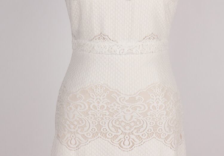 繊細な総レースに包まれたミディ丈のワンピースは、スクエアネックとノースリーブのすっきりとしたデザインで、肌見せのバランスが絶妙。タイトなアワーグラスラインが女性らしい曲線美を引き立て、都会的でノーブルな印象を演出します。ホワイトの透け感が春夏らしい爽やかさを添え、ホテルディナーやパーティー、お呼ばれシーンにもぴったり。大人可愛いスタイルを叶える、洗練された一着です。