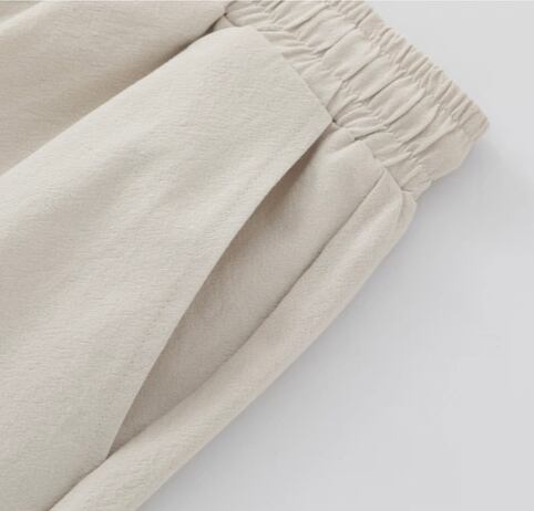 ウエストはゴム+紐仕様でサイズ調整がしやすく、リラックス感のある履き心地が魅力です。