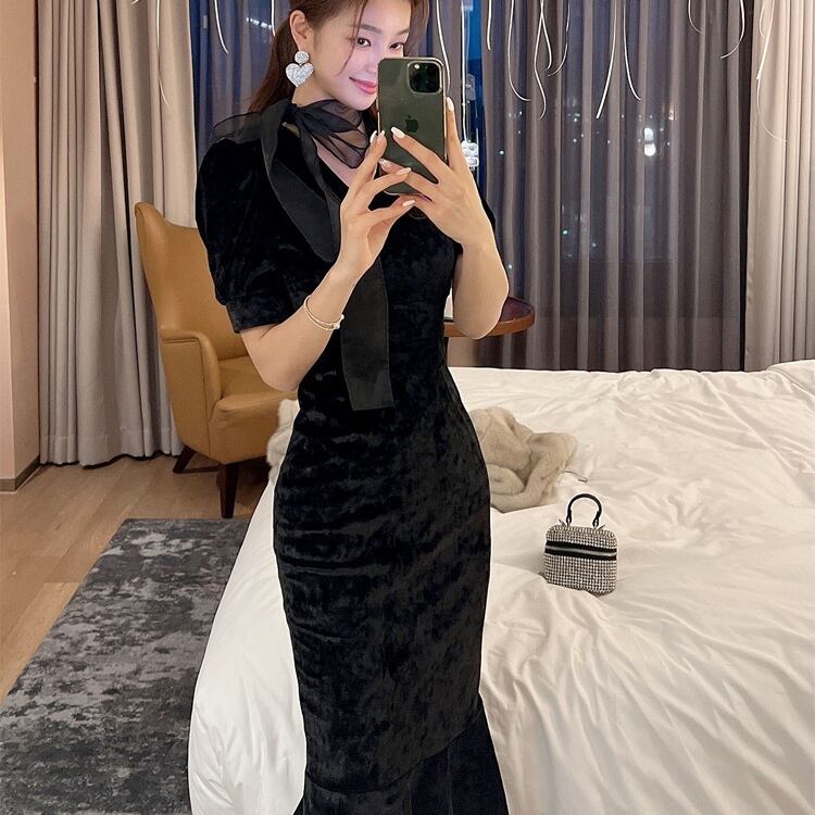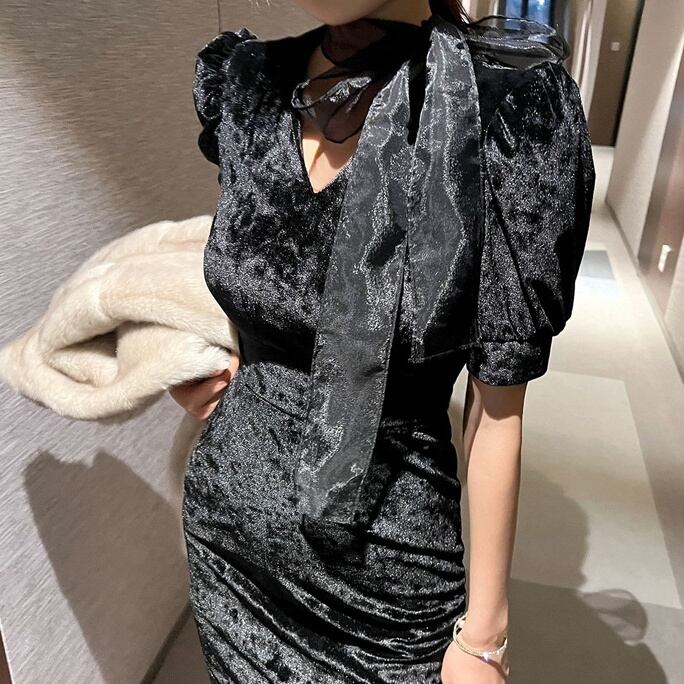 スカート ワンピース ドレス ミモレ 半袖 Vネック りぼんタイ セミフレア スリム リボン ポリエステル かわいい 大人可愛い きれいめ カジュアル 上品 エレガント モダン キュート プリンセス 都会的 ラグジュアリー ロマンティック セクシー 無地 春 夏 お呼ばれ 20代 30代 デート お出かけ パーティー イベント レストラン ホテル ショッピング ラウンジ 韓国 オルチャン コーデ モテ 清楚 流行 インスタ映え スタイルアップ 高見え 格上げ S M L XL くすみ ベーシックカラー 大