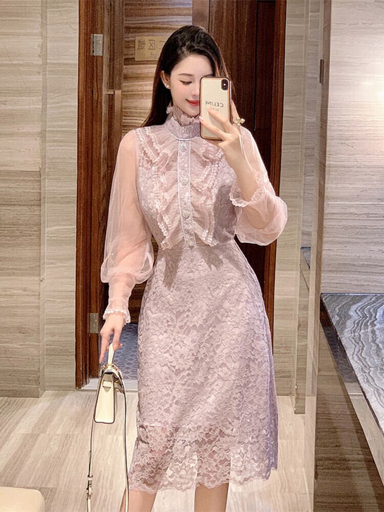 レディース ワンピース 膝上 ボリューム袖 パフスリーブ フレア Aライン ハイウエスト レース シースルー きれいめ 上品 おしゃれ エキゾチック エレガント ナチュラル セクシー 華やか フェミニン フラワー 春 夏 秋 入学式 入園式 卒業式 卒園式 謝恩会 二次会 披露宴 冠婚葬祭 ミーティング プレゼン お呼ばれ ママ 20代 30代 40代 50代 オフィス OL デート お出かけ パーティー イベント レストラン 女子会 バカンス ラウンジ モテ 清楚 高見え S M L XL ラベンダー
