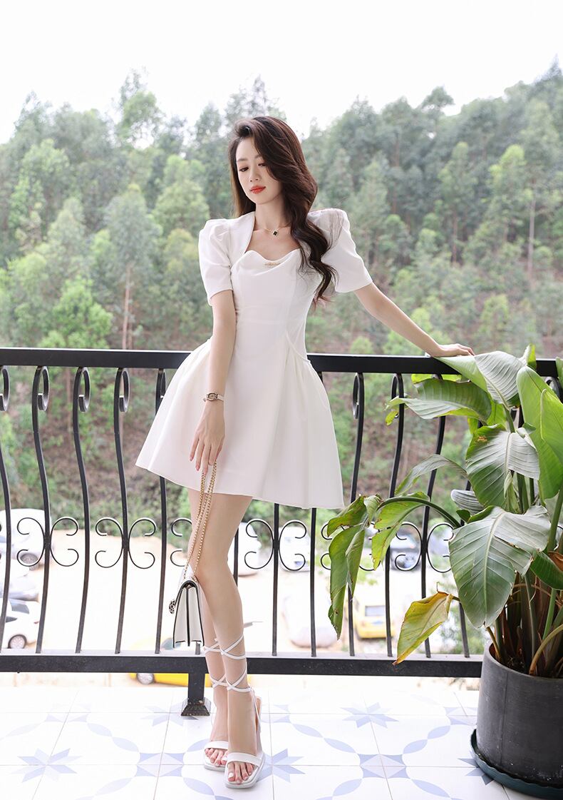 トラペーズネックとパワーショルダーがモダンな印象を与える、ミニ丈の半袖ワンピース。ポケットの縁に寄せられたタックと、そこから広がるドレープが美しいベルラインを描き、スタイルアップ効果も抜群です。ホワイトは爽やかで清楚な雰囲気に、ブラックはシックでノーブルな魅力を演出。きれいめで上品なデザインは、春夏の同窓会やお呼ばれ、ホテルやレストランでのパーティー、キャバ・ラウンジなど、幅広いシーンで活躍します。