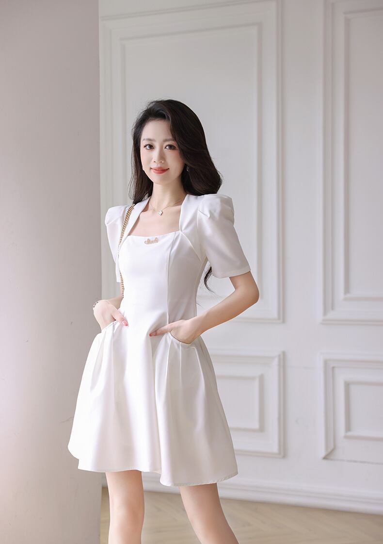 レディース ワンピース ドレス ミニ ショート 半袖 パワーショルダー スクエアネック トラペーズネック フレア Aライン ベルライン ポケット かわいい きれいめ シンプル 上品 ガーリー エレガント モダン 抜け感 ラブリー キュート 都会的 ロマンティック シック ノーブル 爽やか クリーン 無地 春 夏 二次会 同窓会 お呼ばれ 10代 20代 パーティー レストラン ホテル キャバ ラウンジ 韓国 モテ 清楚 トレンド スタイルアップ 高見え S M L XL 2XL 白 ホワイト 黒 ブラック