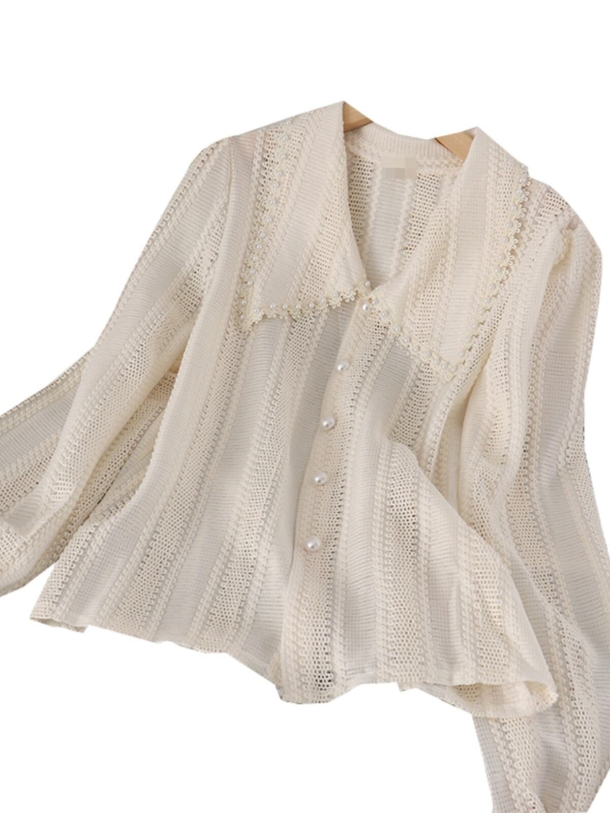 レディース トップス ブラウス 長袖 パフスリーブ カフスリーブ Vネック セーラーカラー つけ襟 Aライン ペプラム風 レース シースルー きれいめ おしゃれ 個性的 モード系 エレガント ラブリー 都会的 ナチュラル 華やか 無地 春 夏 ミーティング 10代 20代 30代 OL 通勤 学生 デート お出かけ お泊まり パーティー イベント レストラン 女子会 休日 バカンス カフェ 面接 普段使い 着回し モテ 清楚 インスタ映え 肌見せ 涼しい S M L XL ホワイト ブラック アプリコット