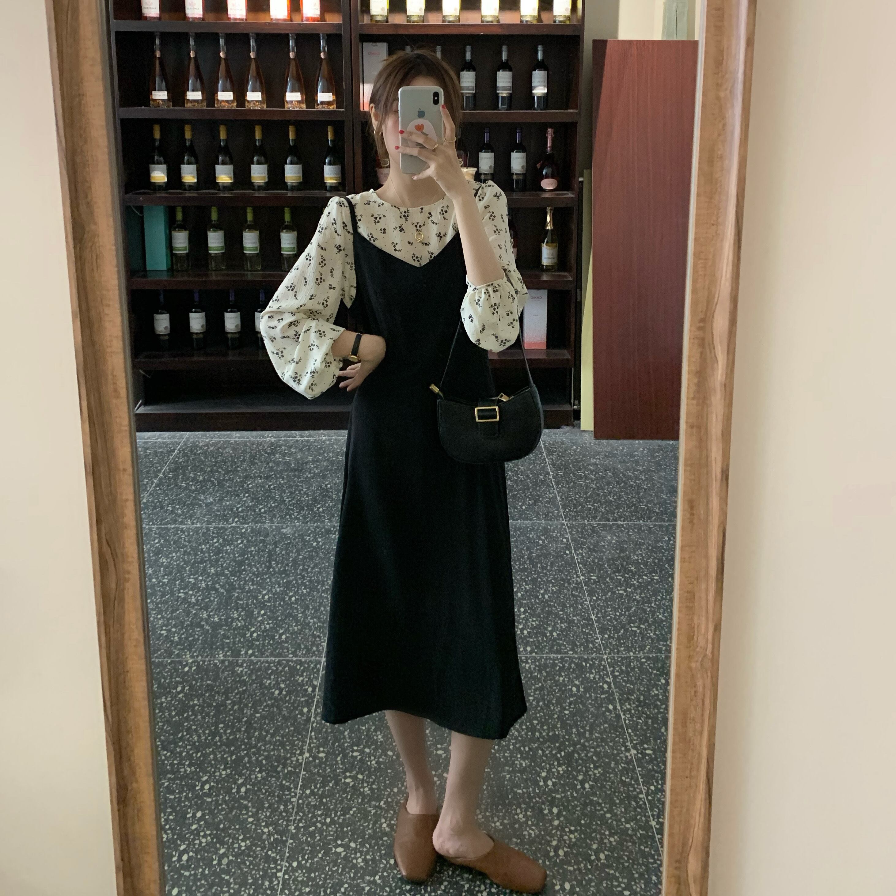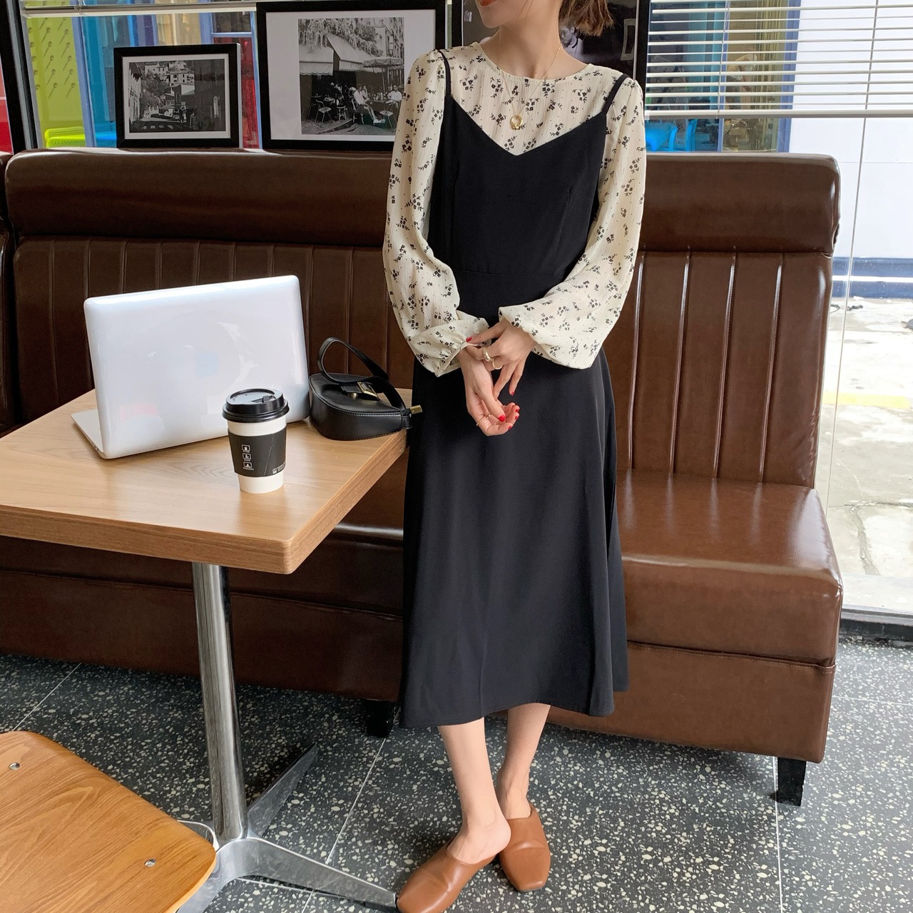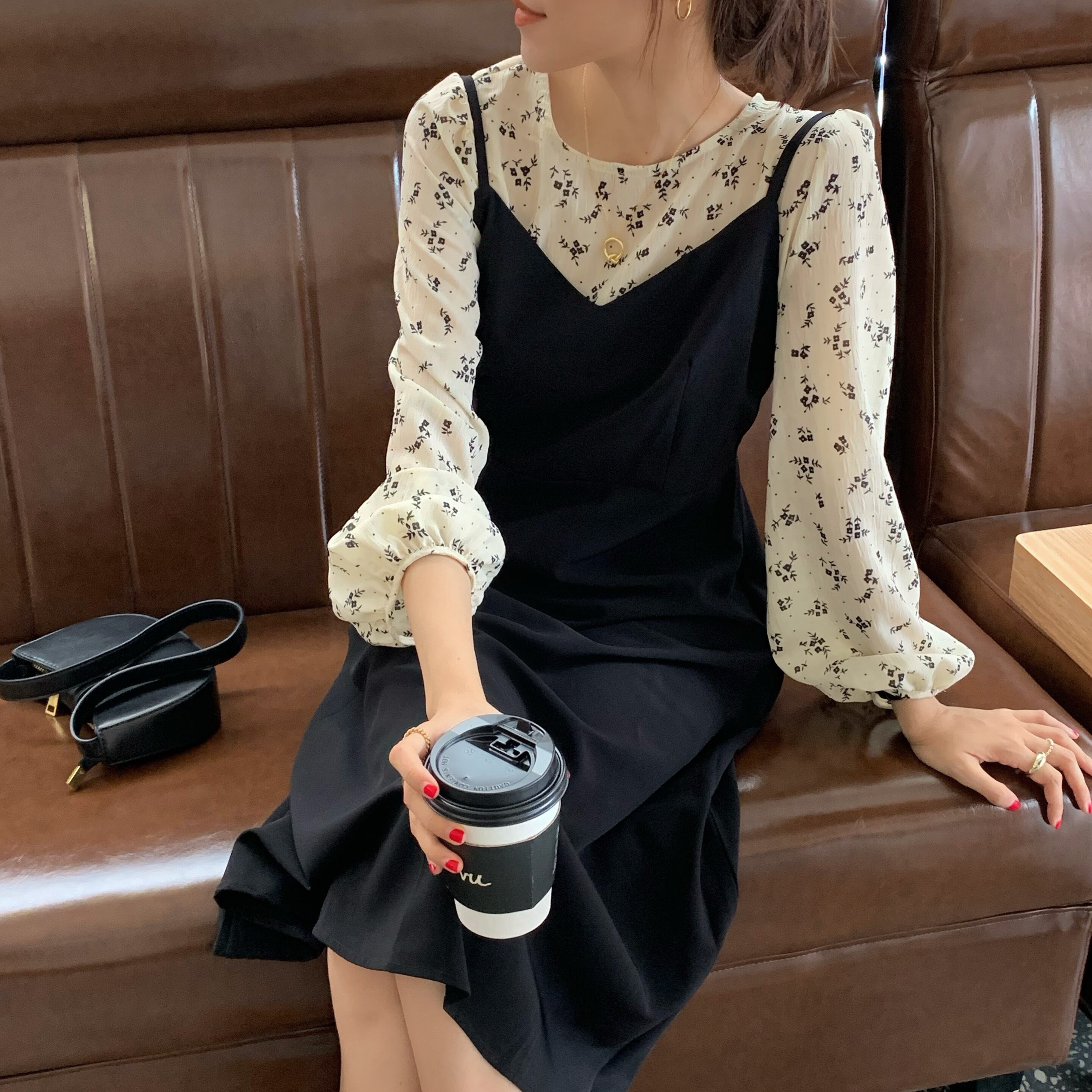 花柄ブラウスとキャミワンピースの2点セット。セットで着るだけで旬のレイヤードスタイルが完成します。